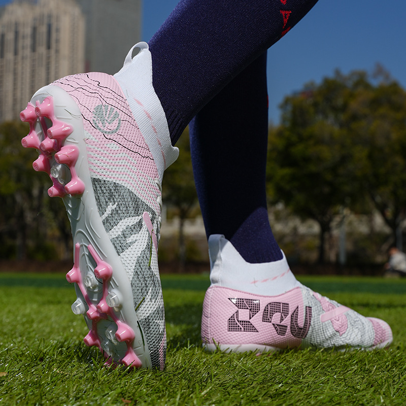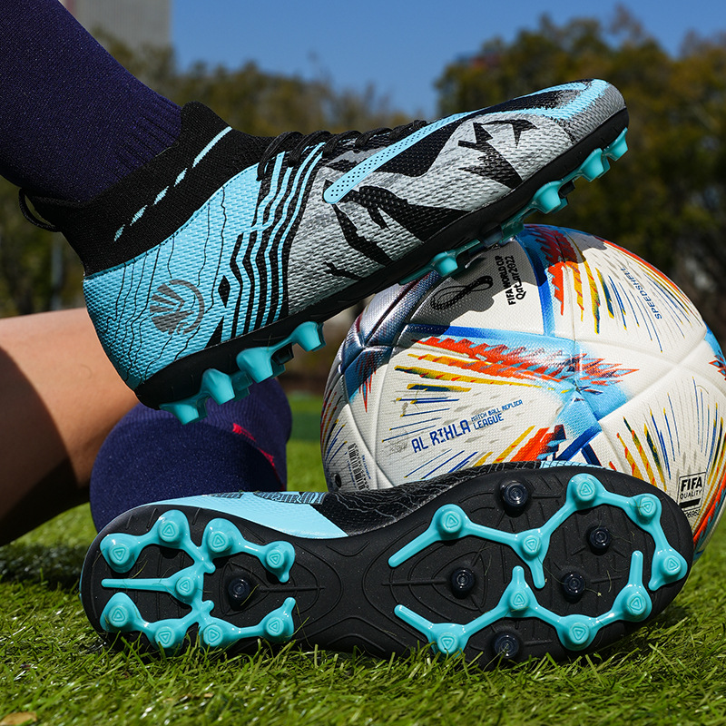 청소년을 위한 새로운 국경 간 이음매 없는 플라이 니트 하이탑 축구화 AG 스파이크 TF 부러진 스파이크 어린이 훈련 운동화스토어 가기