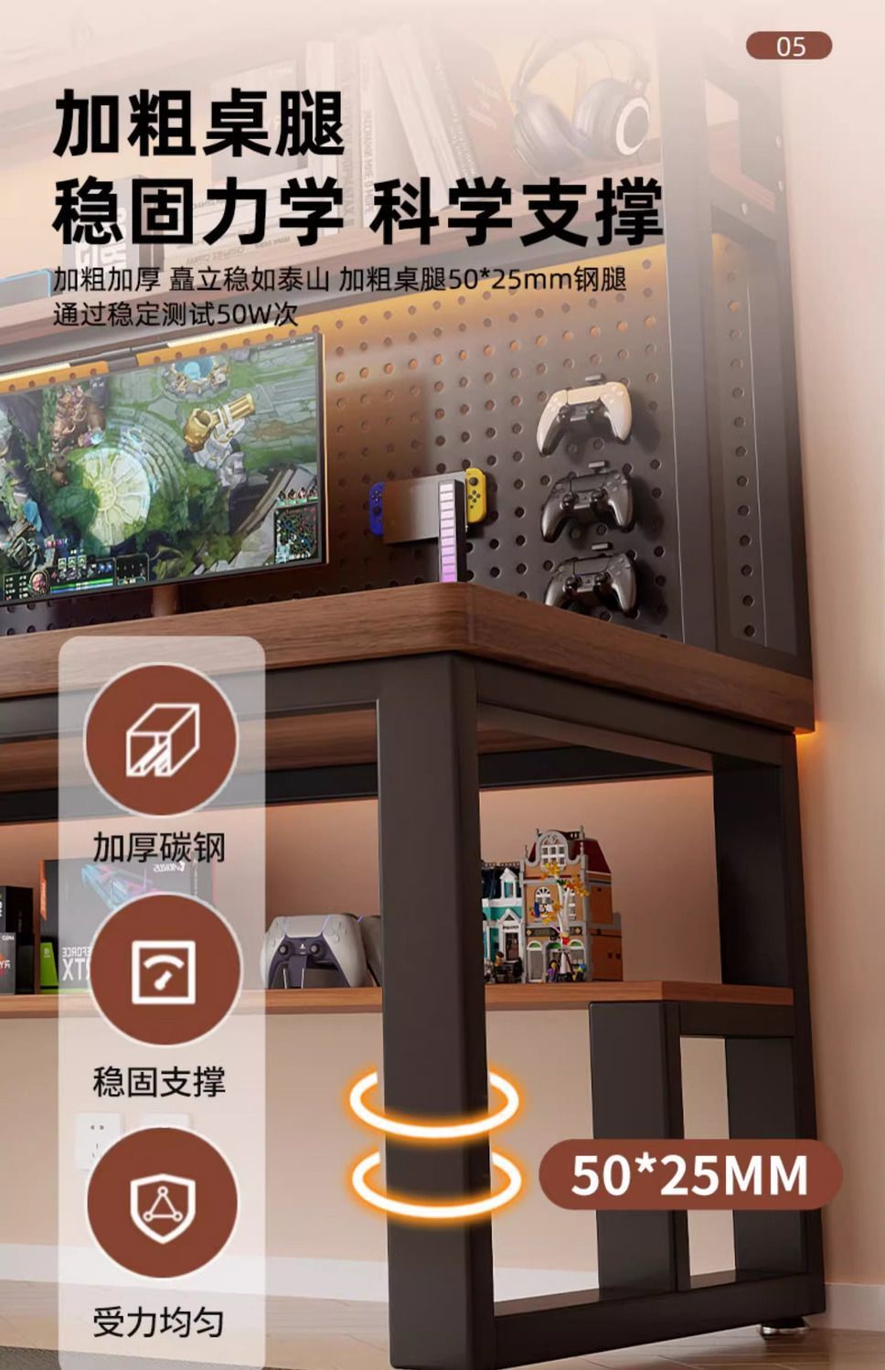 • 블랙 프레임 + 오크 데스크탑 + 천공 보드