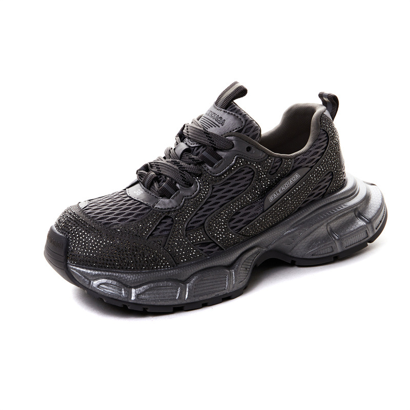 나비 Ao 2025 봄 새로운 Rhinestone 정품 가죽 토레 신발 여성 통기성 메쉬 올매치 두꺼운 운동화 높은 높이 신발스토어 가기