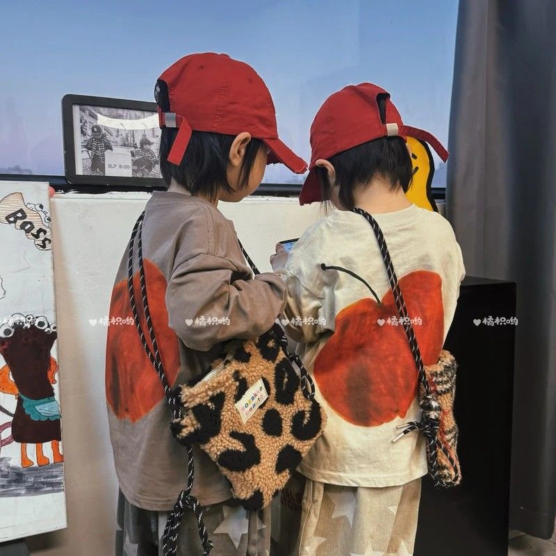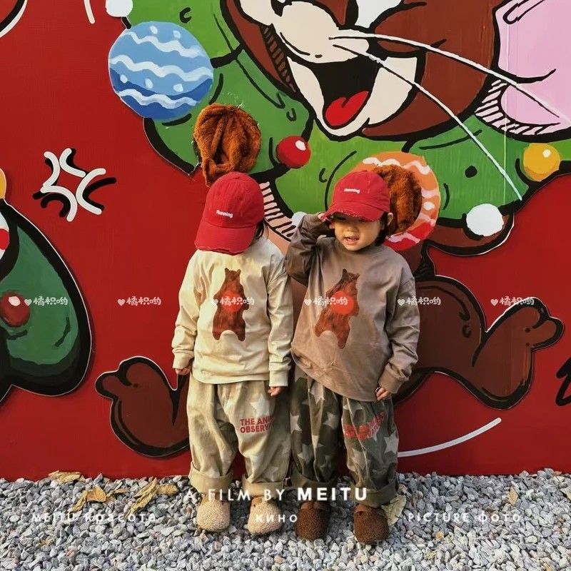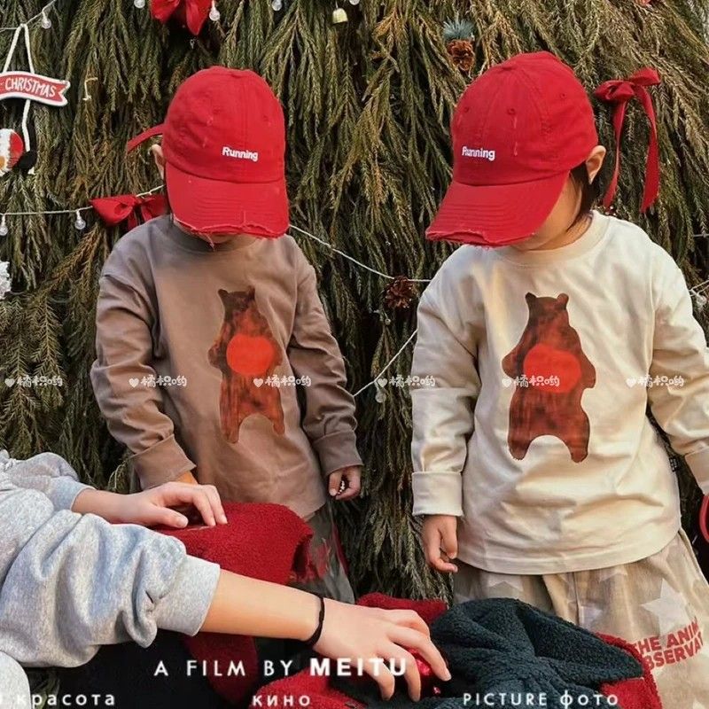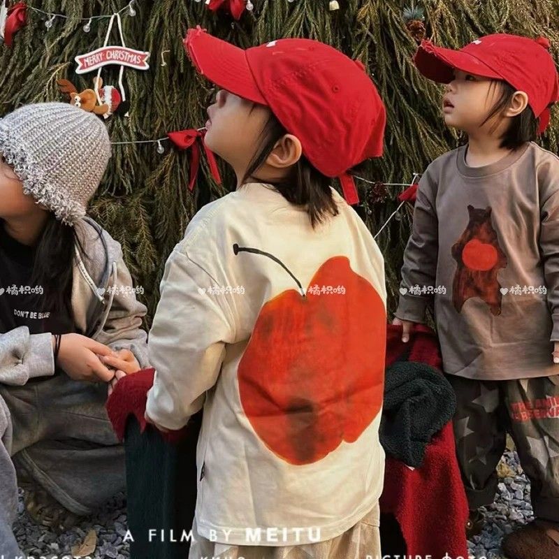 소년과 소녀를위한 한국 스타일 느슨한 캐주얼 봄, 가을 셔츠 다목적 만화 긴팔 티셔츠 유행 아동 의류스토어 가기