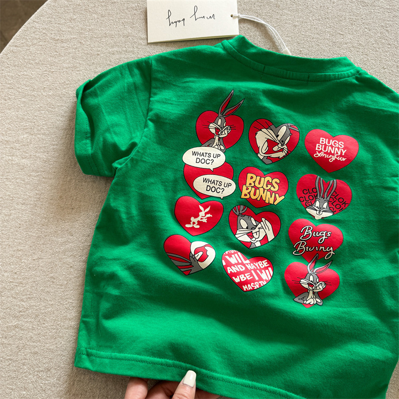 어린이 반팔 2025 여름 새로운 소년과 소녀 만화 사랑 짧은 소매 T 아기 둥근 목면 티셔츠 도매