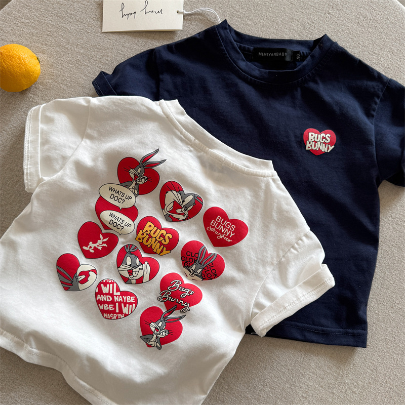 어린이 반팔 2025 여름 새로운 소년과 소녀 만화 사랑 짧은 소매 T 아기 둥근 목면 티셔츠 도매스토어 가기