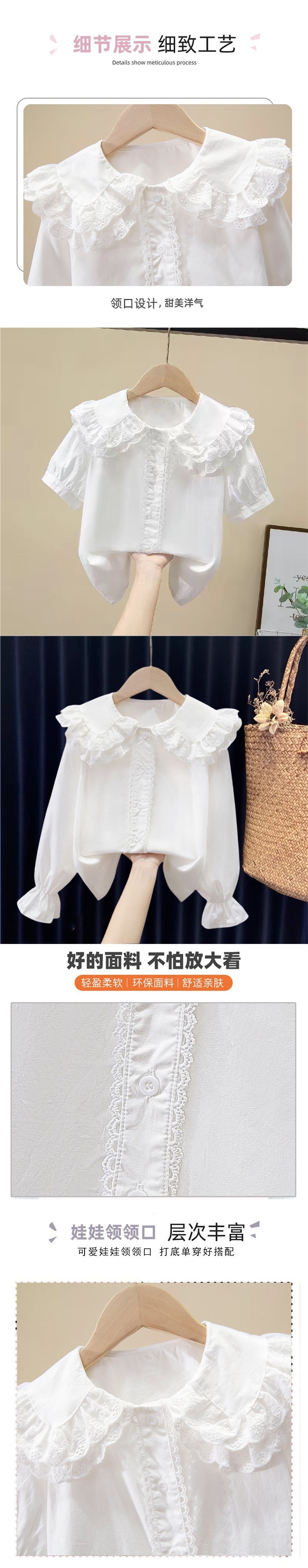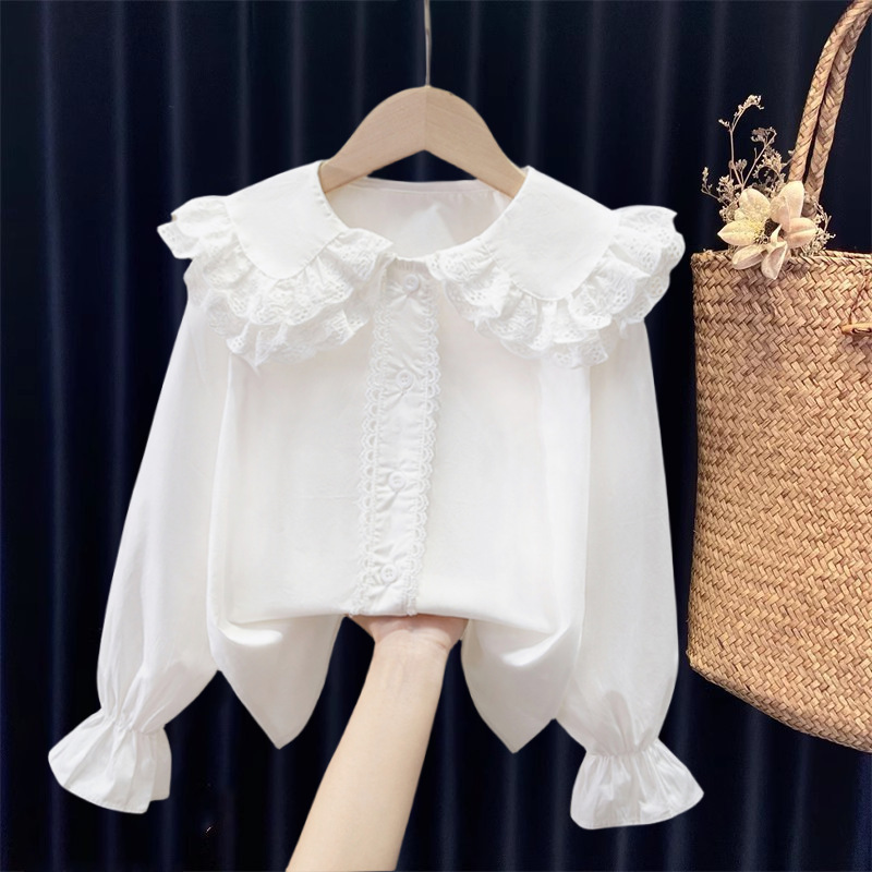 여아 셔츠 봄 아동복 2025 새로운 흰색 셔츠 인형 칼라 코튼 여아용 대형 아동용 셔츠 탑스토어 가기