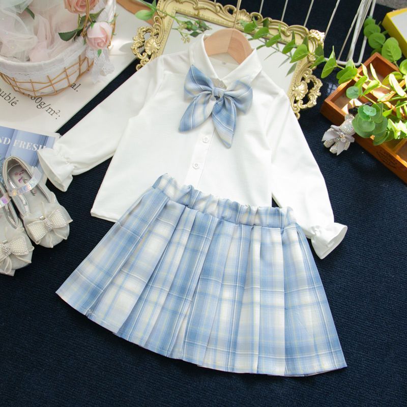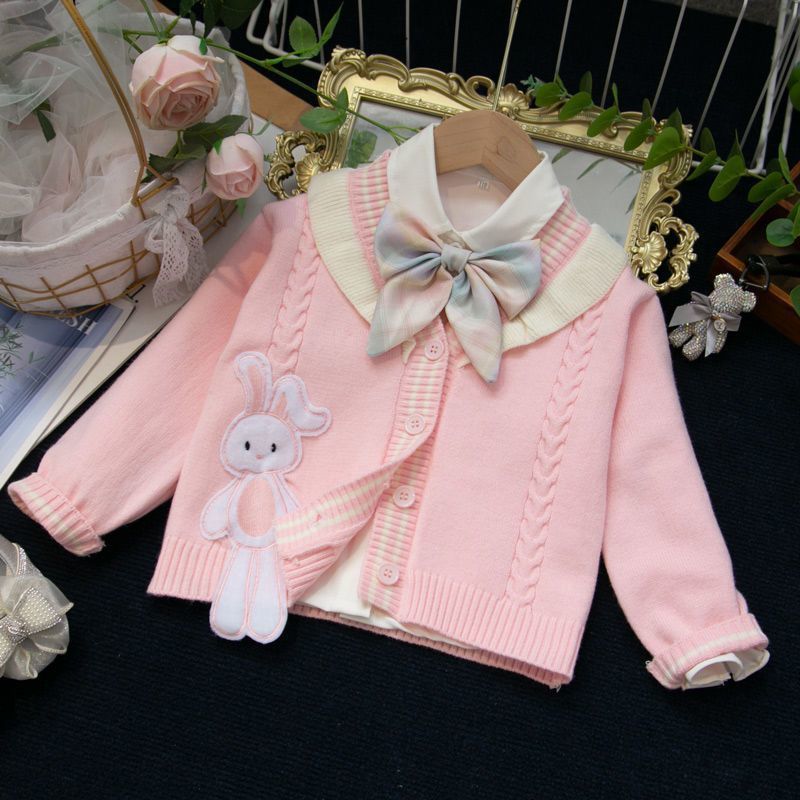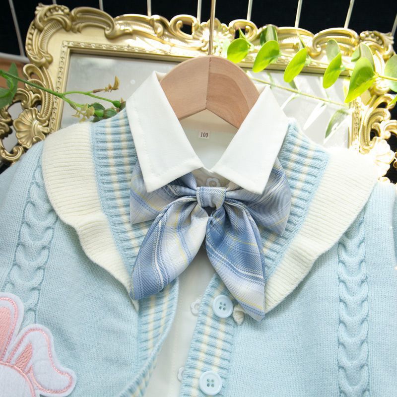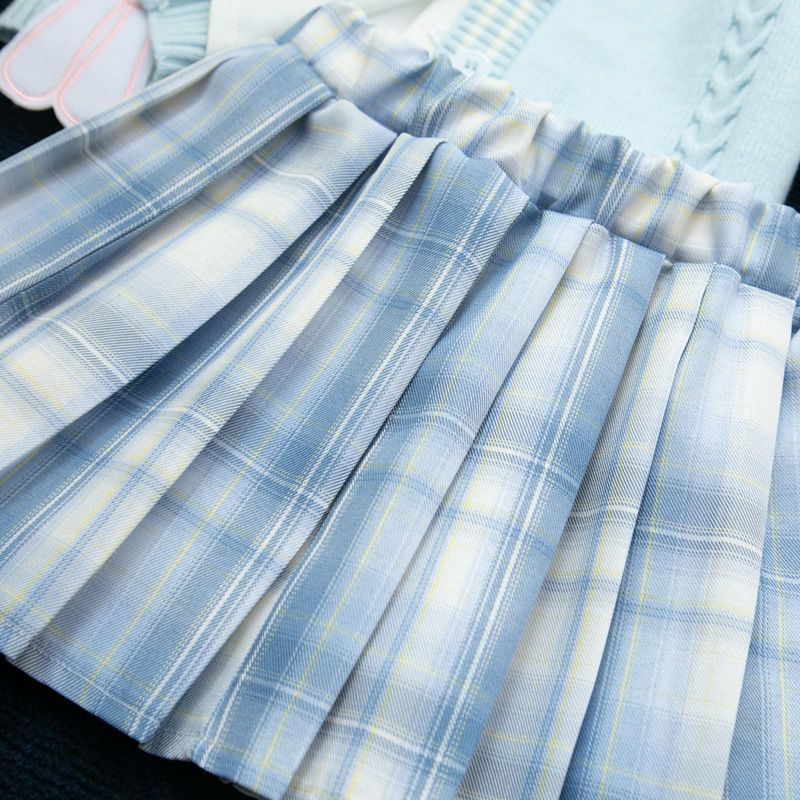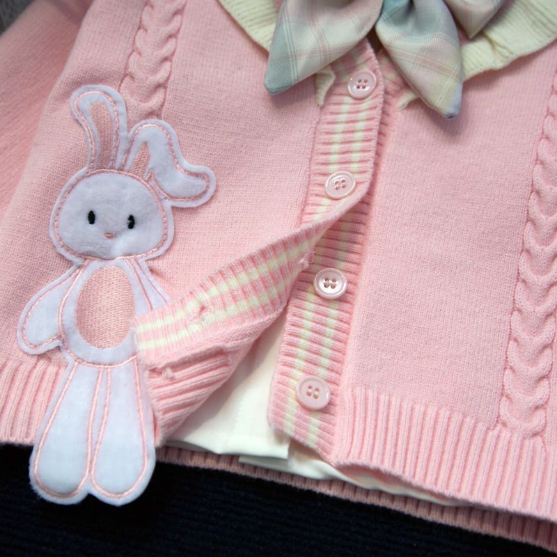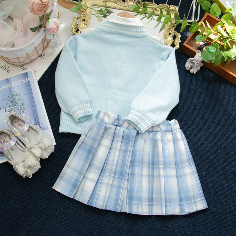 여자 가을 의류 세트 대학 스타일 jk 주름 치마 2025 새로운 여자 토끼 카디건 스웨터 셔츠 3 피스 세트스토어 가기