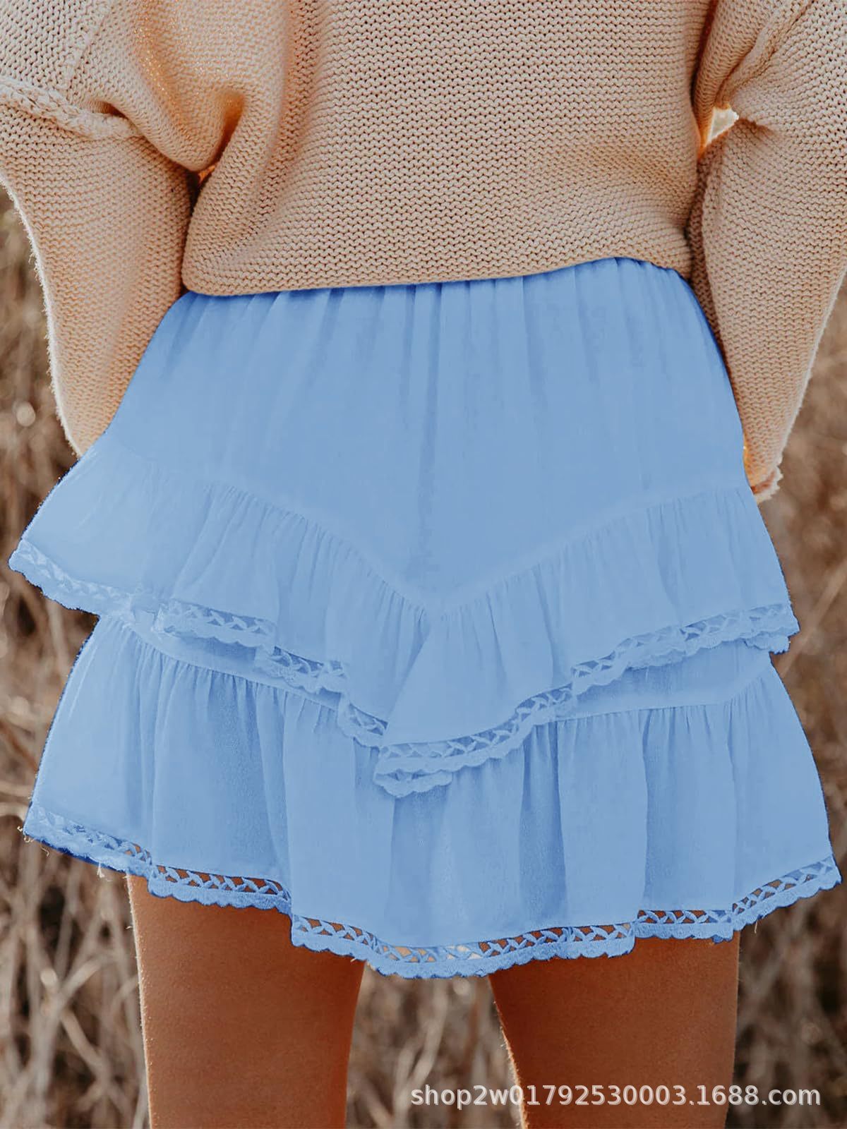 여성 캐주얼 플로팅 반바지 Boho Ruffled Layered Short Skirt 하이 웨이스트 미니 스커트 골프 테니스