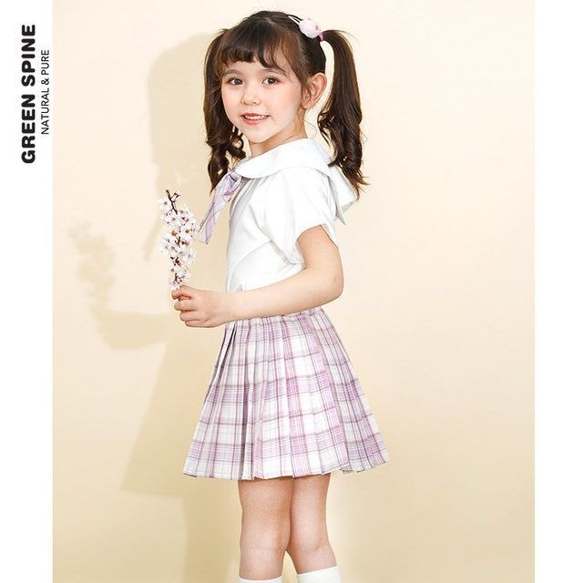Jk 유니폼 소녀 정장 여름 신작 어린이 일본 대학 반팔 흰색 셔츠 격자 무늬 스커트 투피스 세트스토어 가기