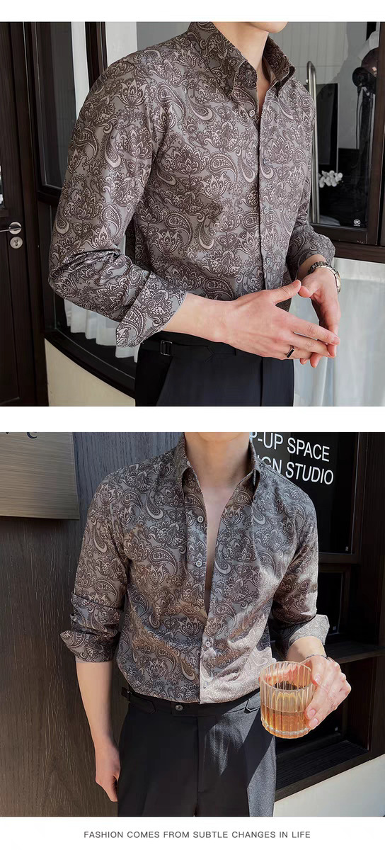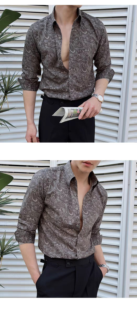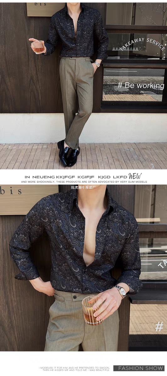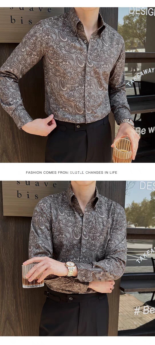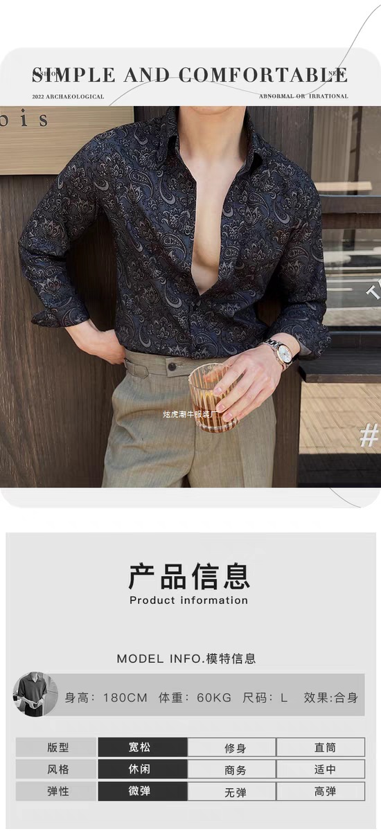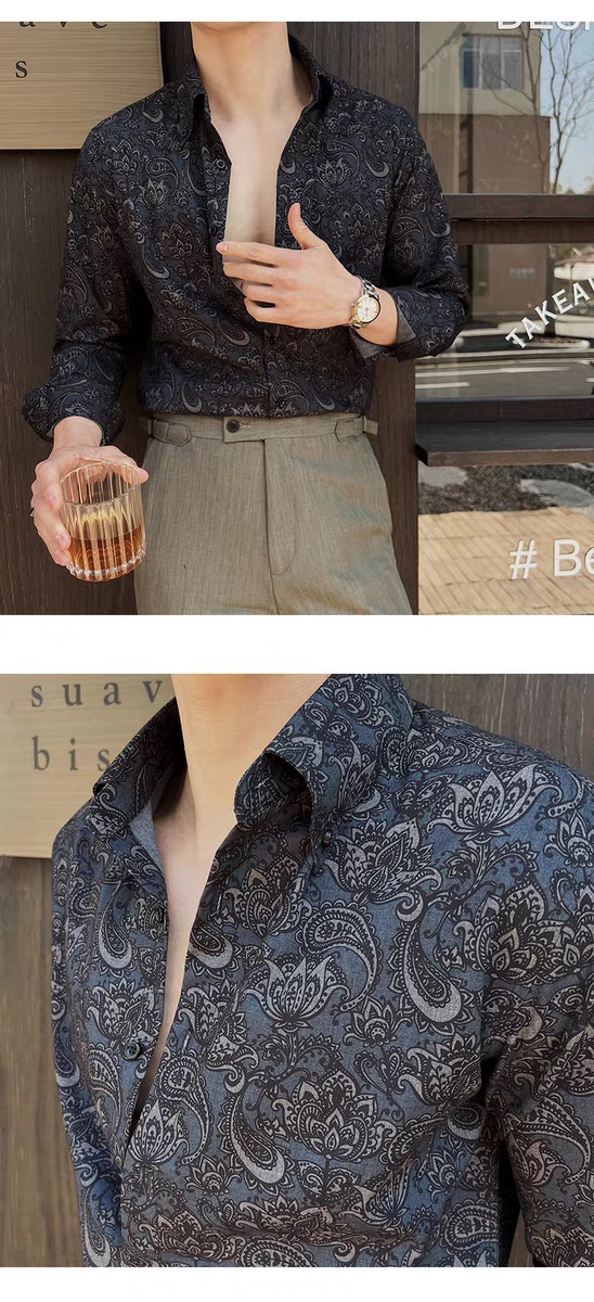 유럽 스타일 패션 트렌드 맞춤형 프린트 셔츠 남성용 긴팔 이너웨어 슬림 라펠 긴팔 꽃무늬 셔츠 남성용