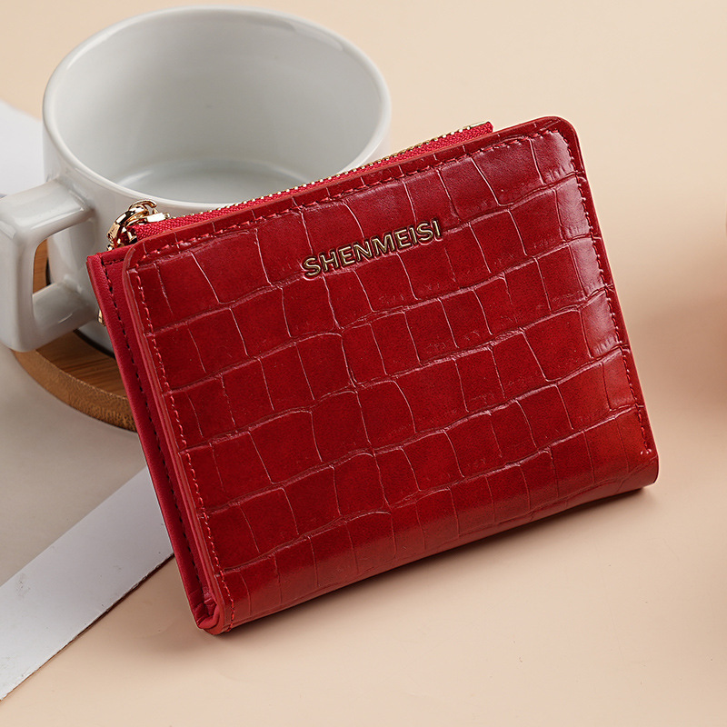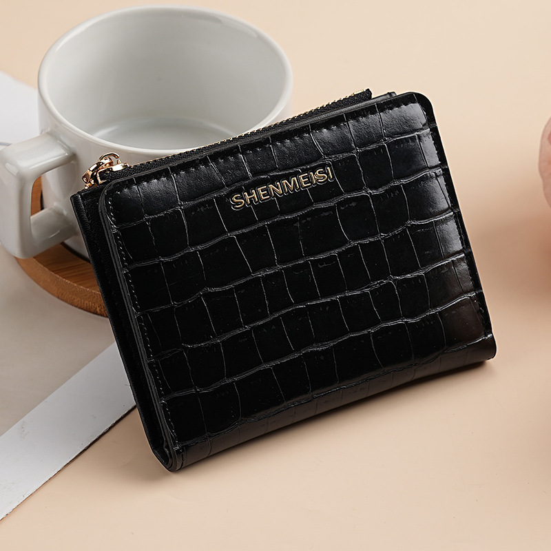 새로운 여성 짧은 지갑 국경 돌 패턴 2 배 지퍼 동전 지갑 패션 카드 가방 지갑 티켓 클립 여성스토어 가기