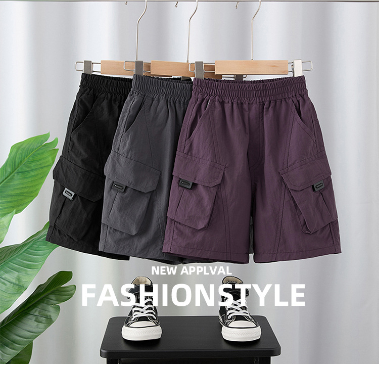 소년의 2025 새로운 스타일 작업복 캐주얼 반바지 얇은 여름 새 스타일 어린이 여름 느슨한 바지 아기 반바지스토어 가기