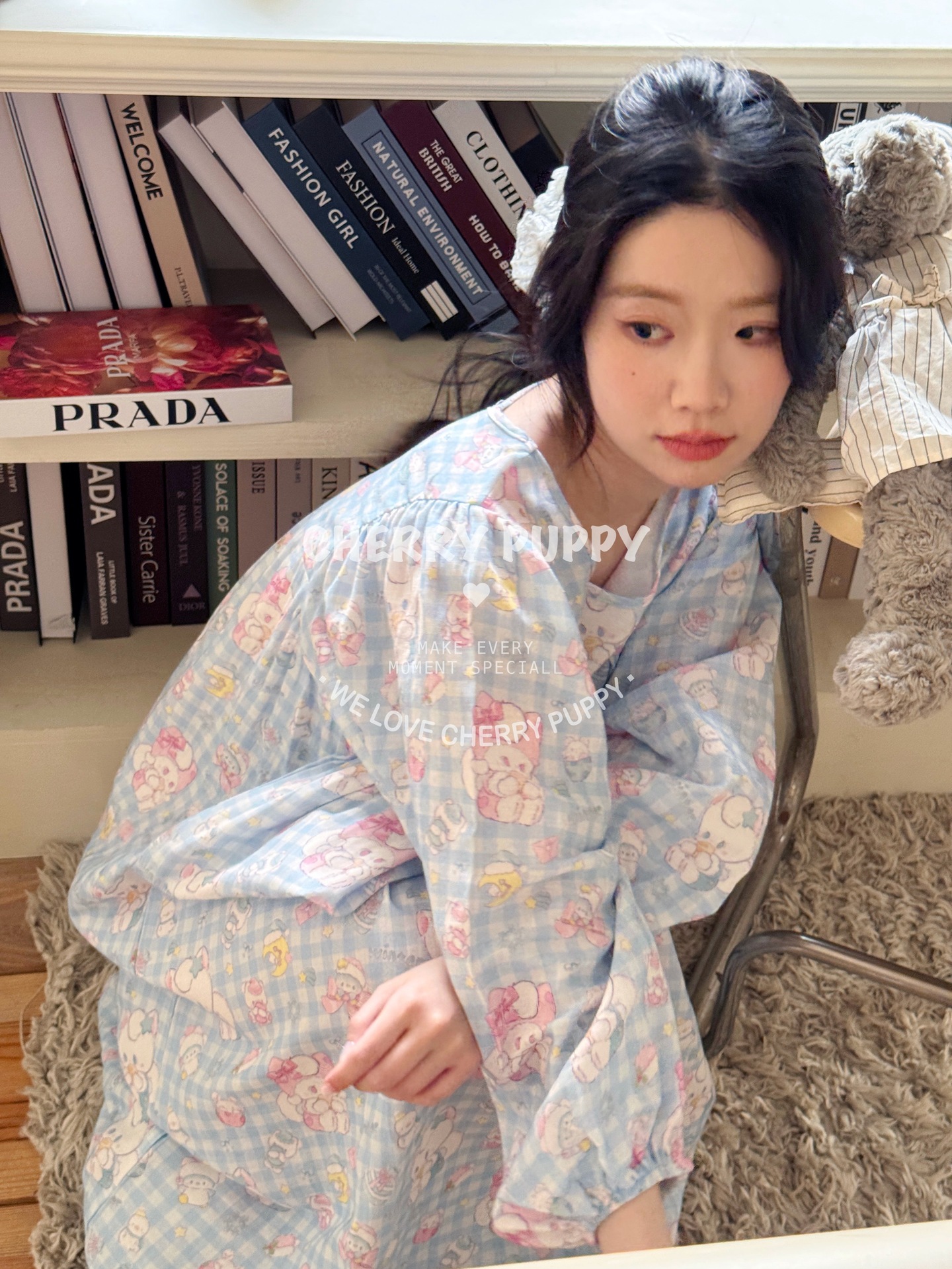 스노우볼 고양이 잠옷 격자 무늬 2 색 더블 레이어 면사 클래스 A 잠옷 홈웨어 편안하고 부드러운스토어 가기