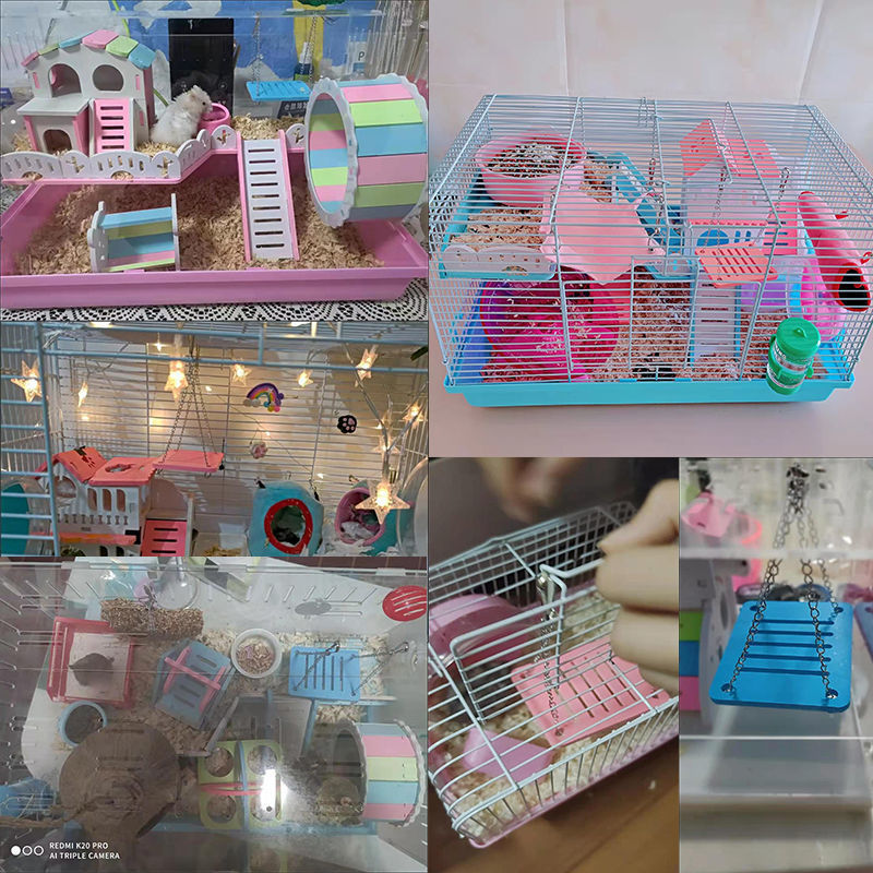 작은 햄스터 장난감 용품 황금 곰 그네 허니 가방 슈로우 해결 셀프 하이 풍경 쉘터링 하우스 캐빈 가구 세트