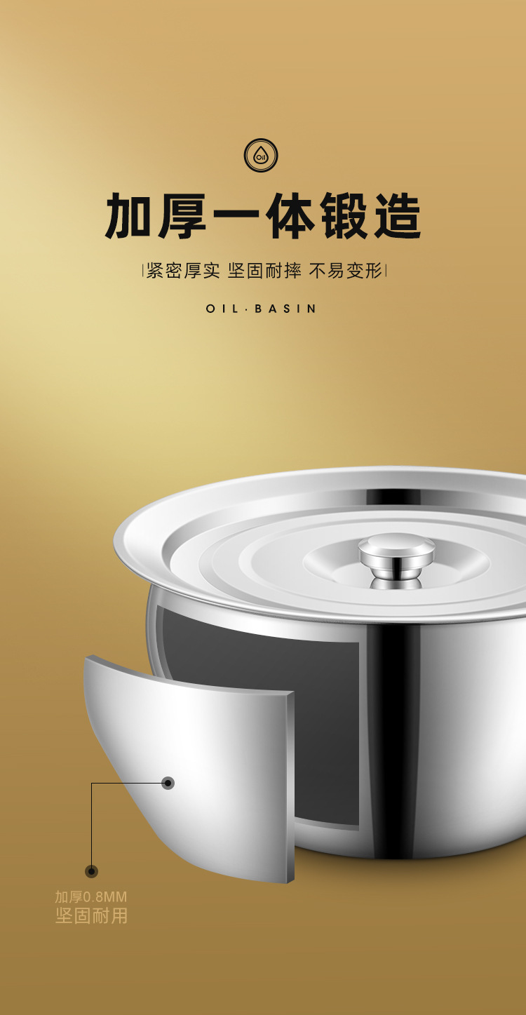 돼지 기름 분지 304 스테인레스 스틸 특수 두꺼운 기름 분지 가정용 주방 오일 실린더 상업용 조미료 분지 오일 드럼 소쿠리 세트