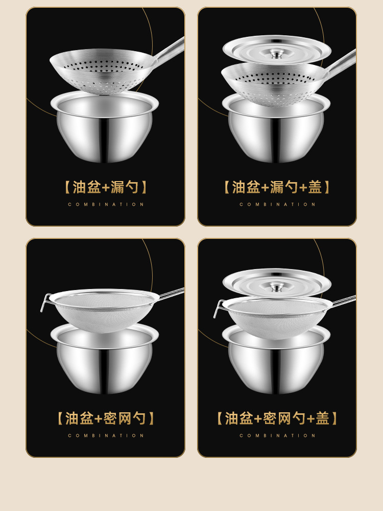 돼지 기름 분지 304 스테인레스 스틸 특수 두꺼운 기름 분지 가정용 주방 오일 실린더 상업용 조미료 분지 오일 드럼 소쿠리 세트스토어 가기