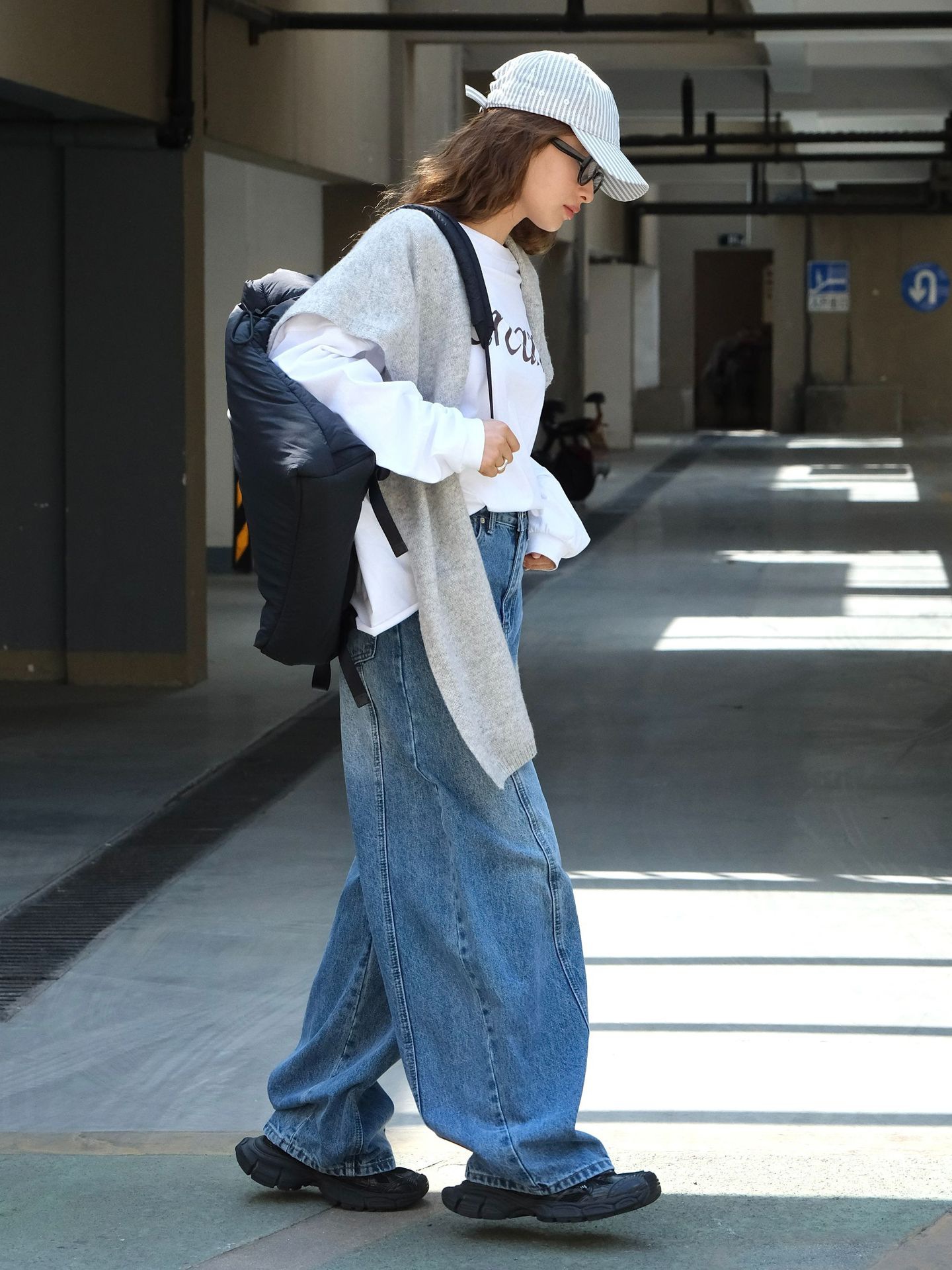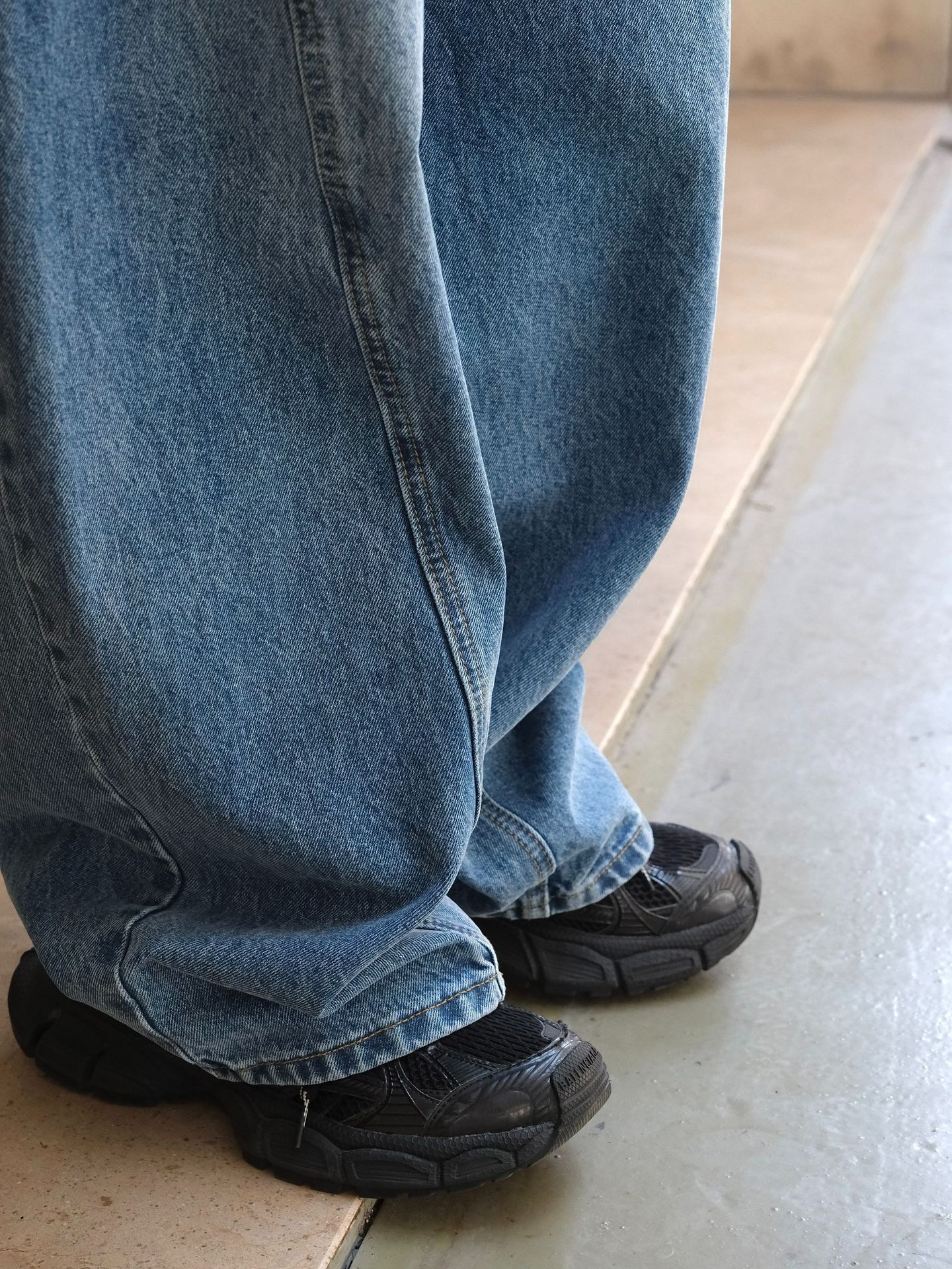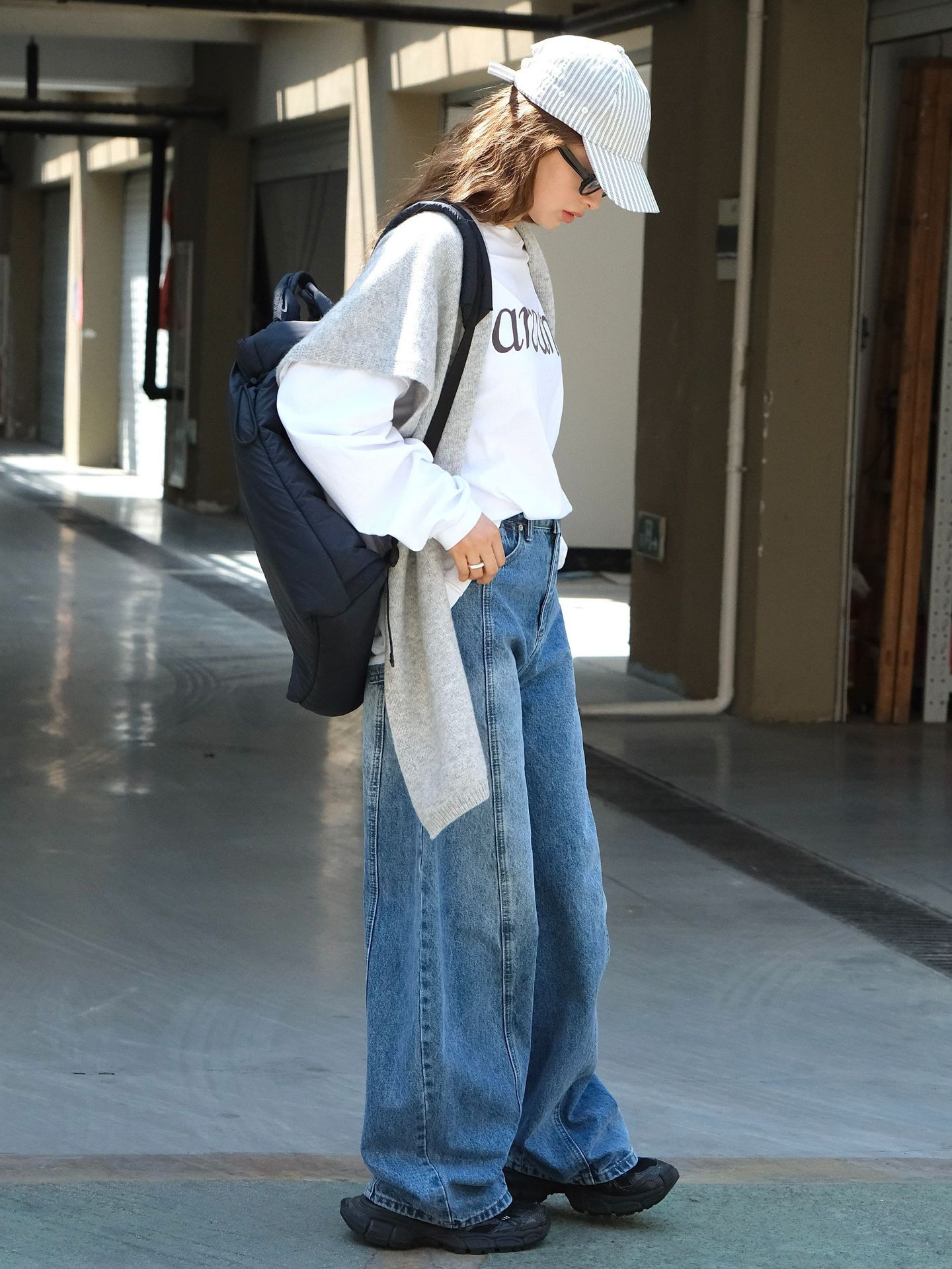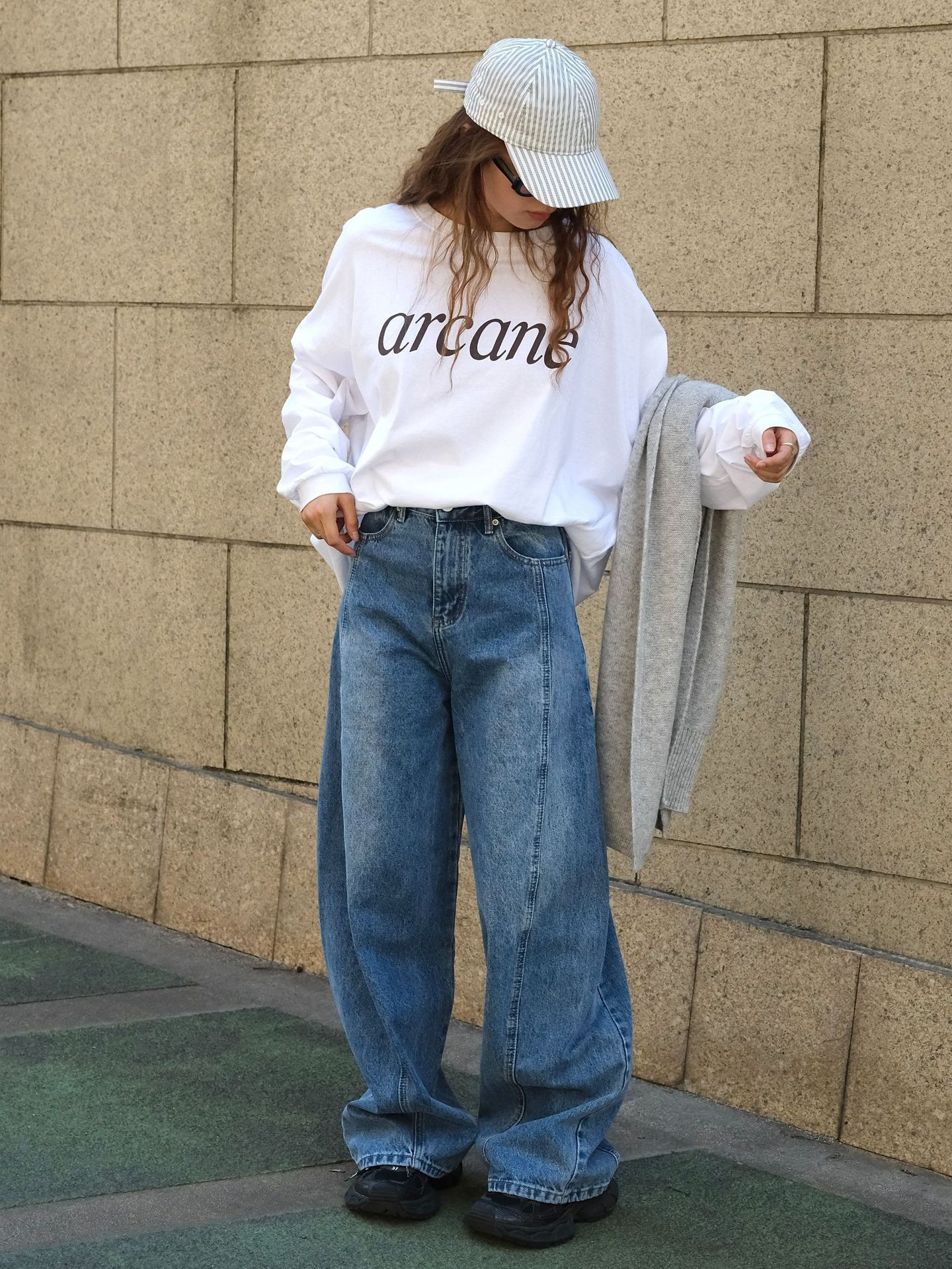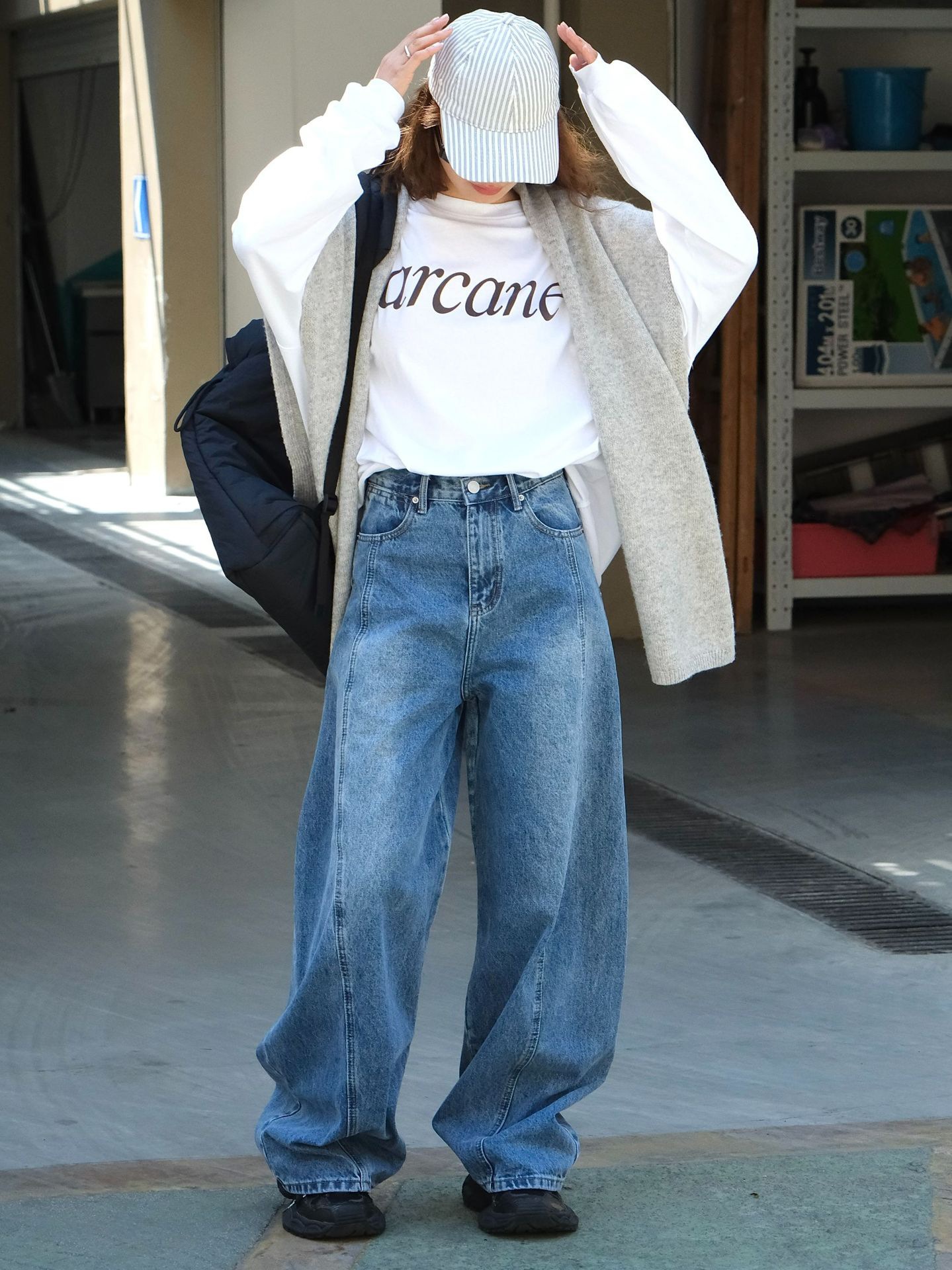 가을, 겨울 새로운 미국 복고풍 곡선 스플 라이스 청바지 여성용 하이 웨이스트 와이드 레그 슬림 캐주얼 바지