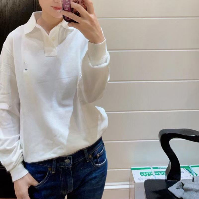 새로운 스타일 간단한 풀 F 말 자수 POLO Lel 느슨한 니트 풀오버 최고의 미국 스타일 트렌디 브랜드 국경 라이브 방송스토어 가기