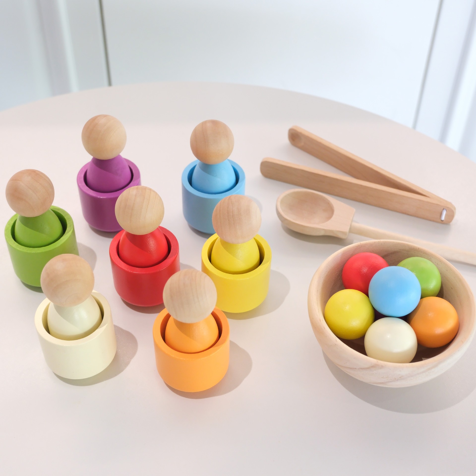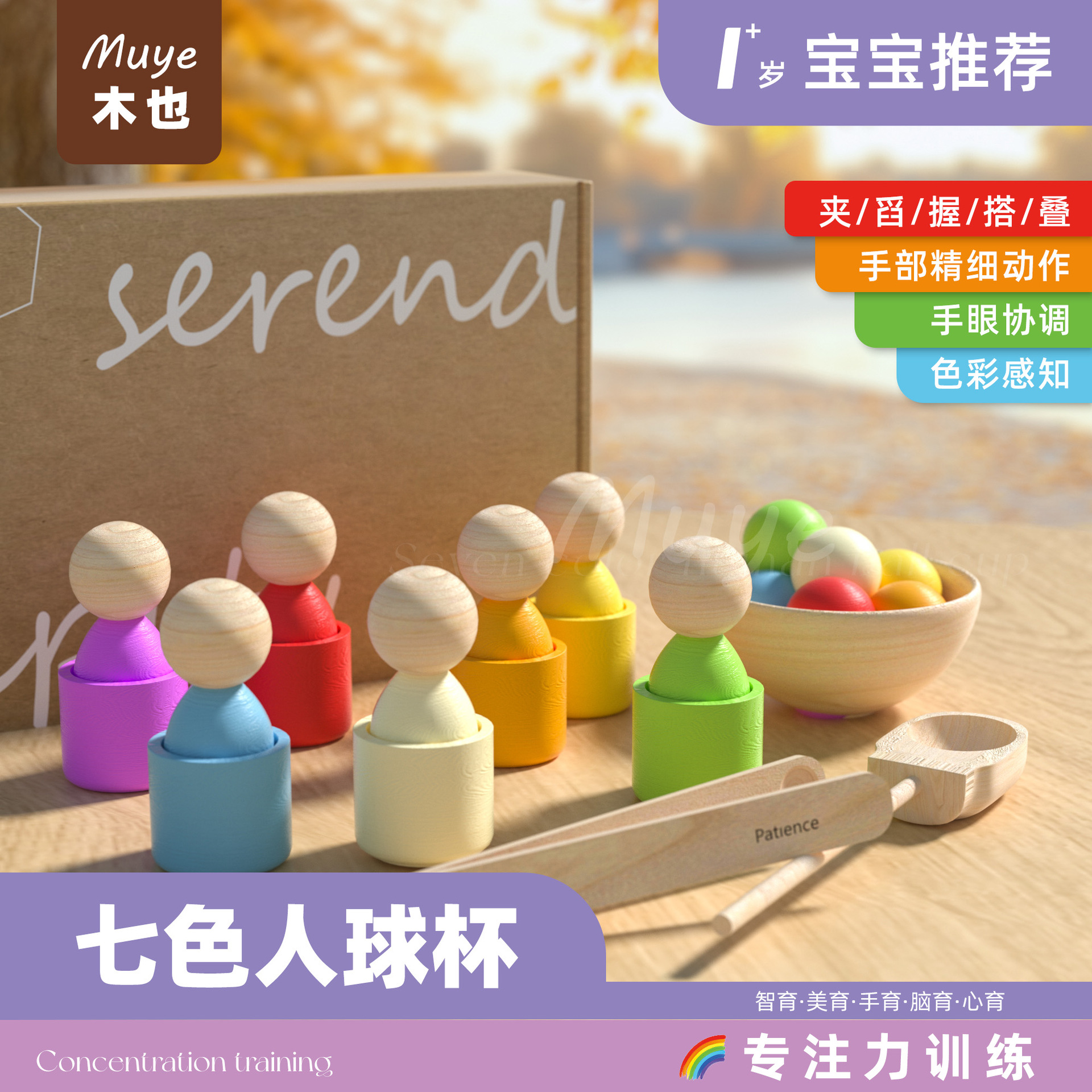몬테소리 볼 클립 비즈 집중 훈련 7 컬러 볼 컵 컬러 분류 인지 유아 1-3 세 교육 보조스토어 가기