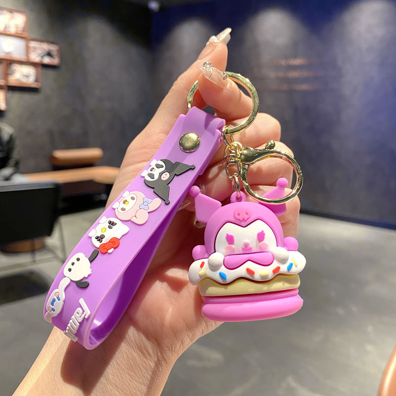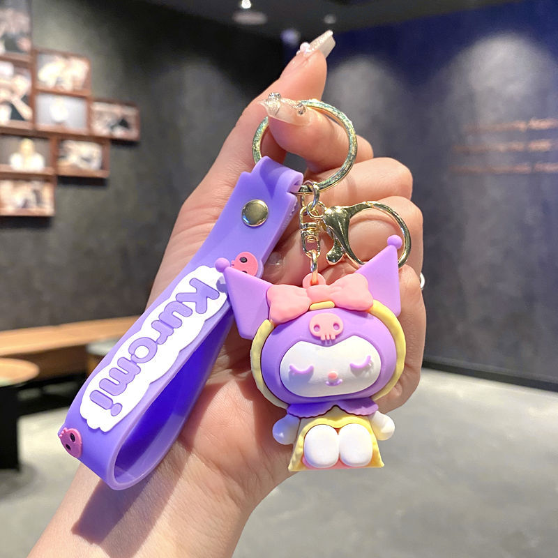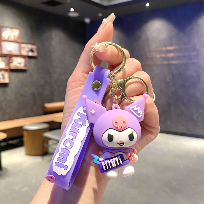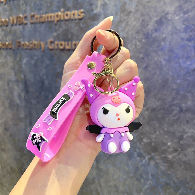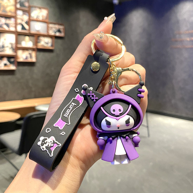 만화 Sanrio Kuromi 키 체인 인형 기계 인형 펜던트 귀여운 가방 열쇠 고리 작은 선물 도매