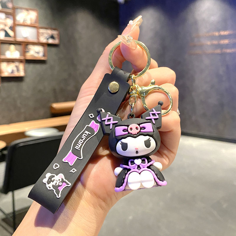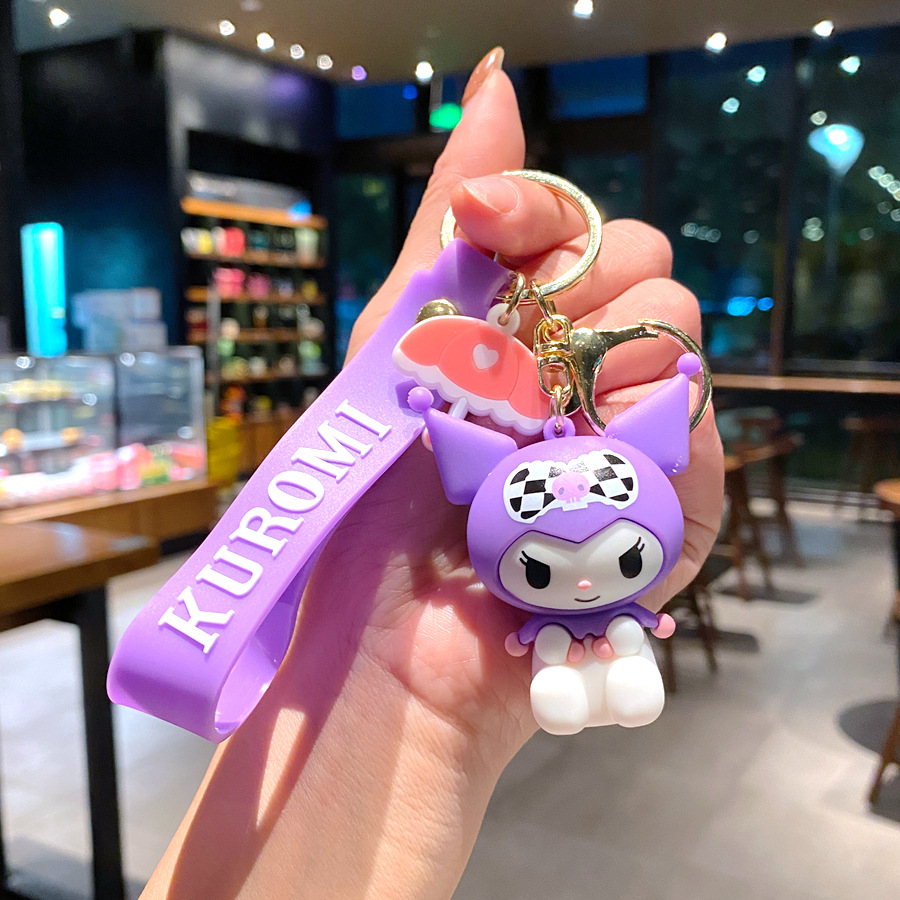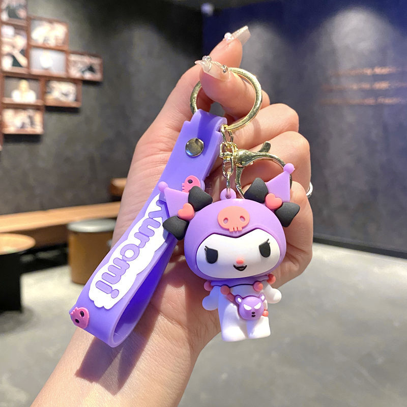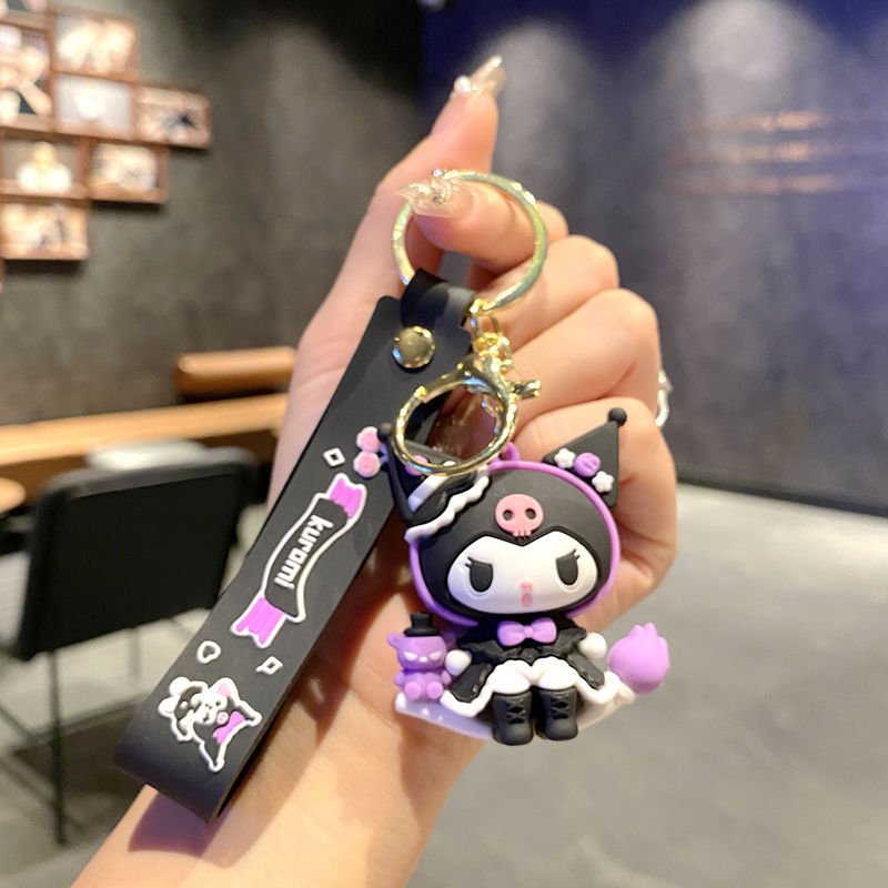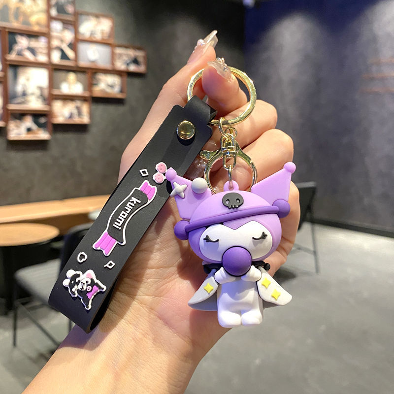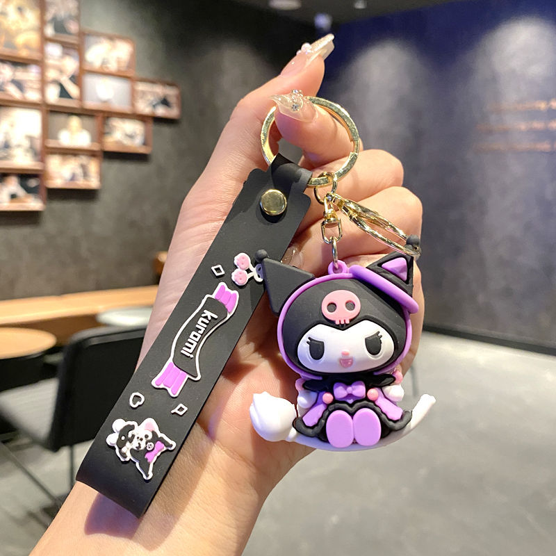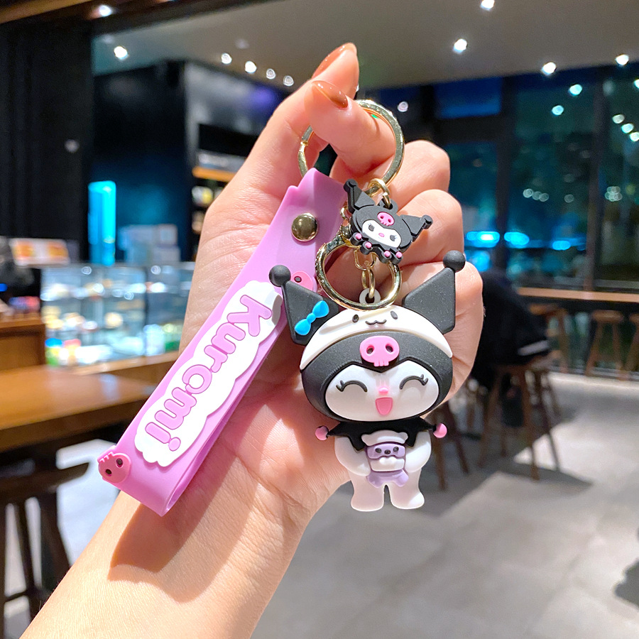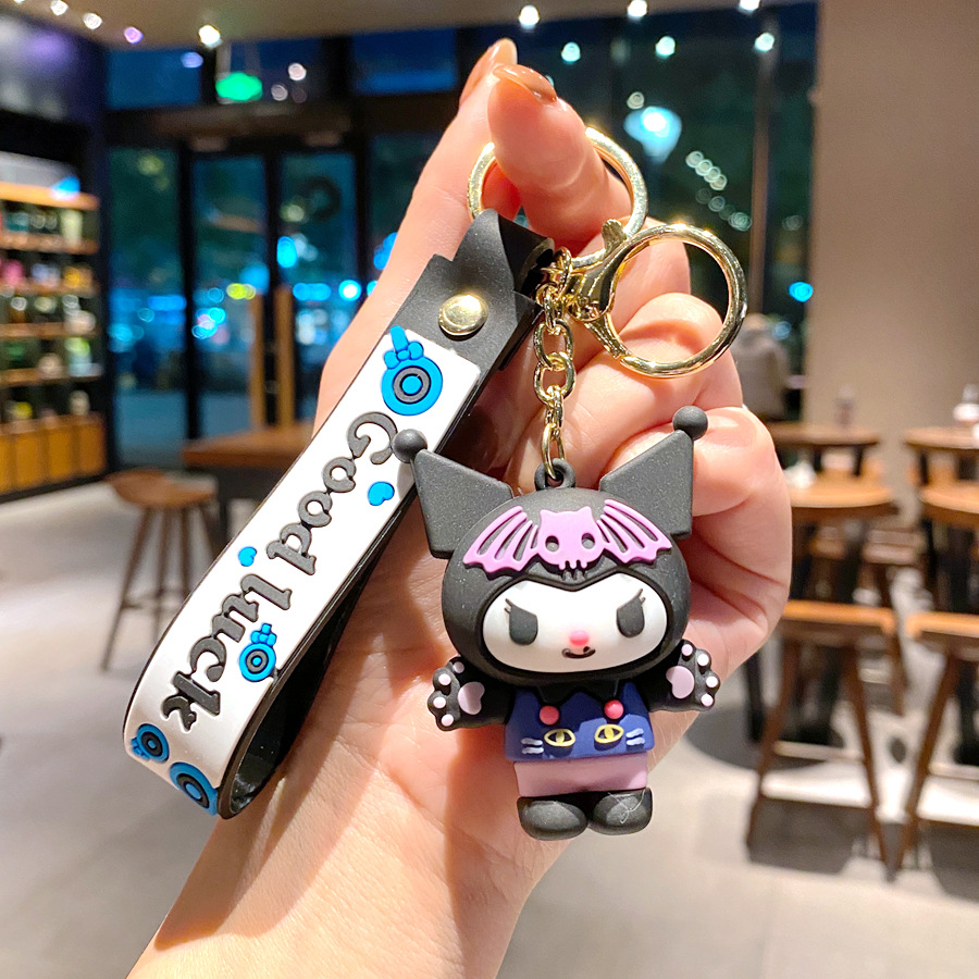 만화 Sanrio Kuromi 키 체인 인형 기계 인형 펜던트 귀여운 가방 열쇠 고리 작은 선물 도매스토어 가기