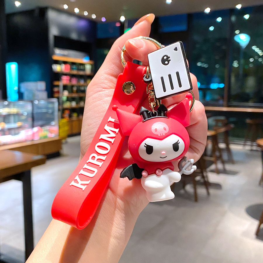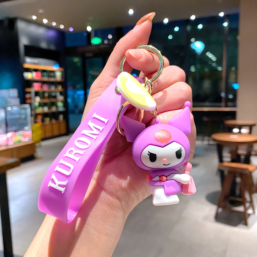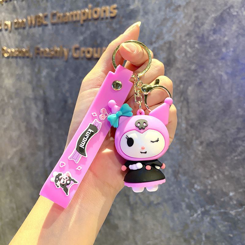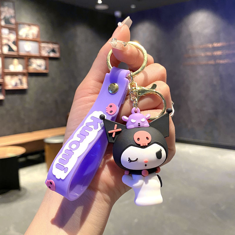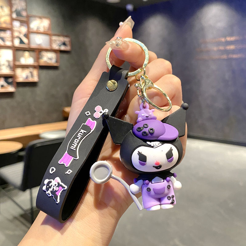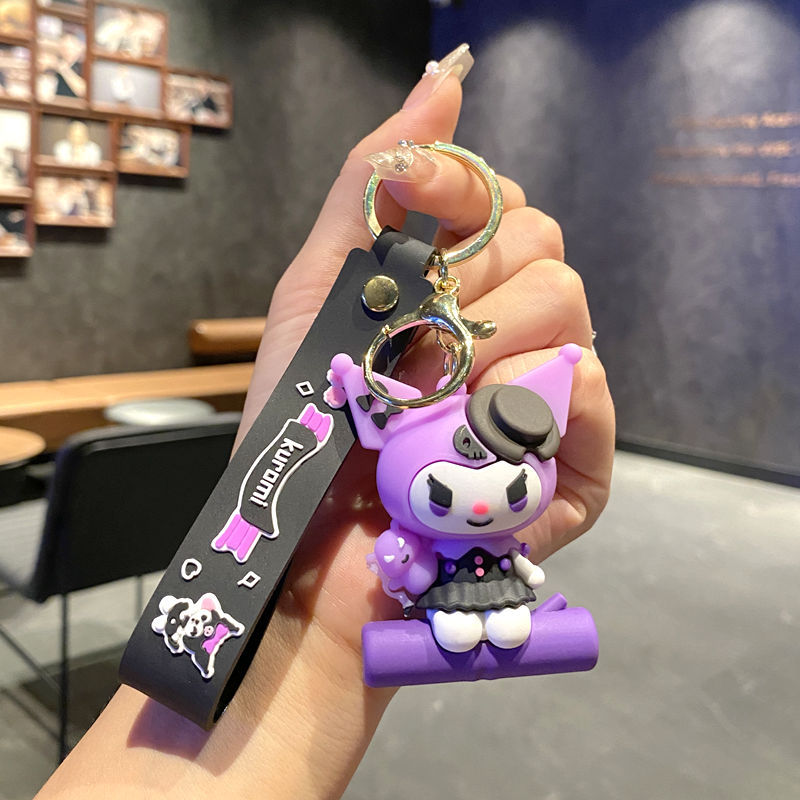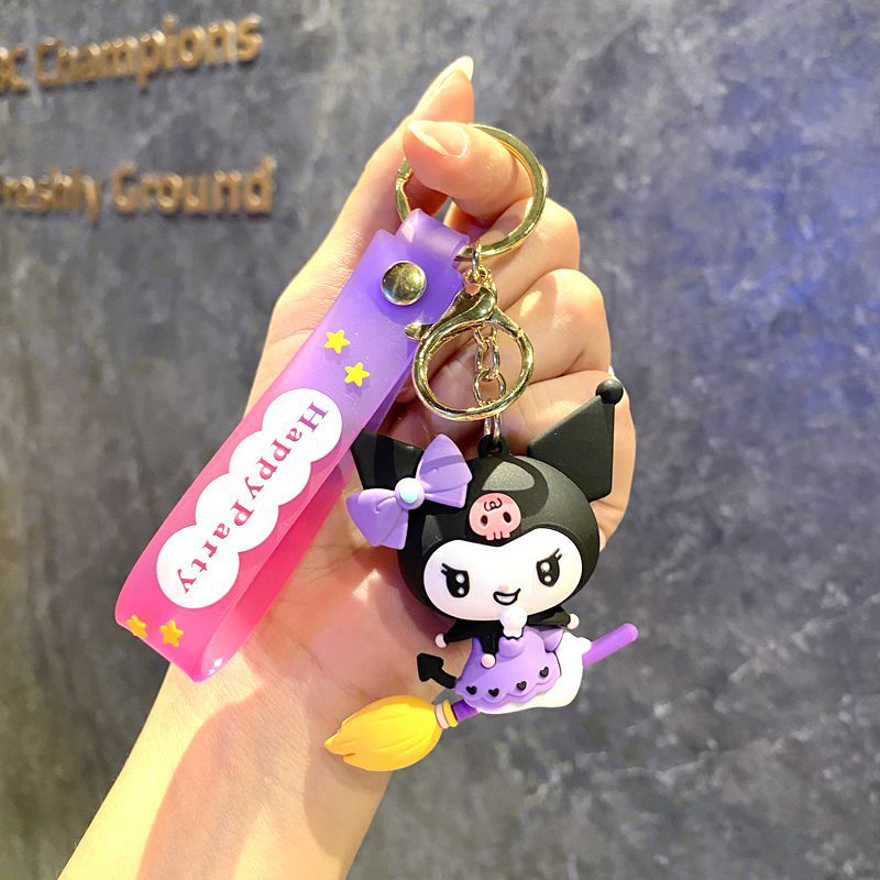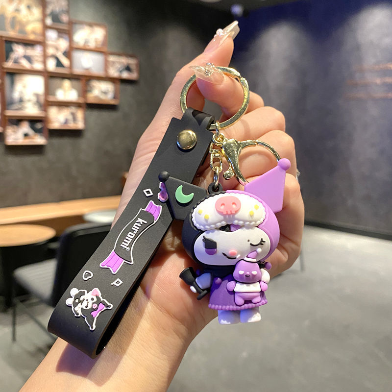 만화 Sanrio Kuromi 키 체인 인형 기계 인형 펜던트 귀여운 가방 열쇠 고리 작은 선물 도매스토어 가기