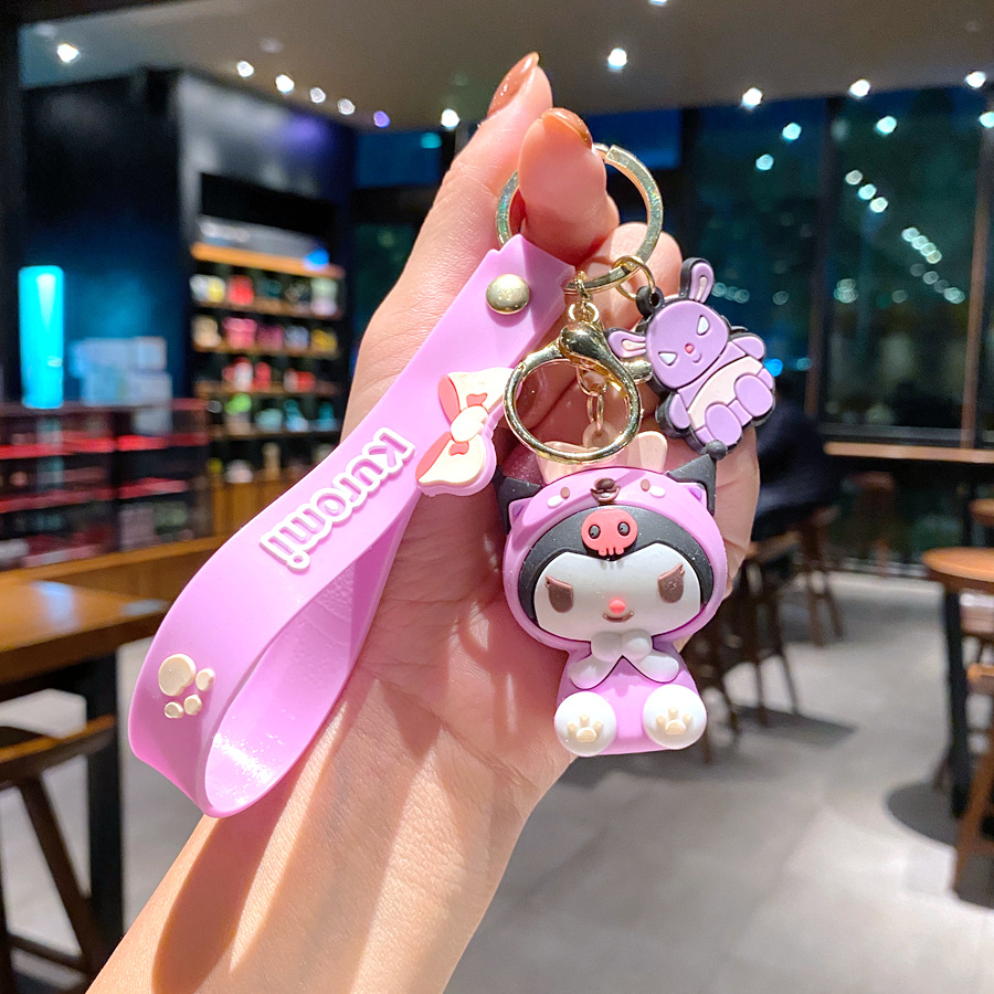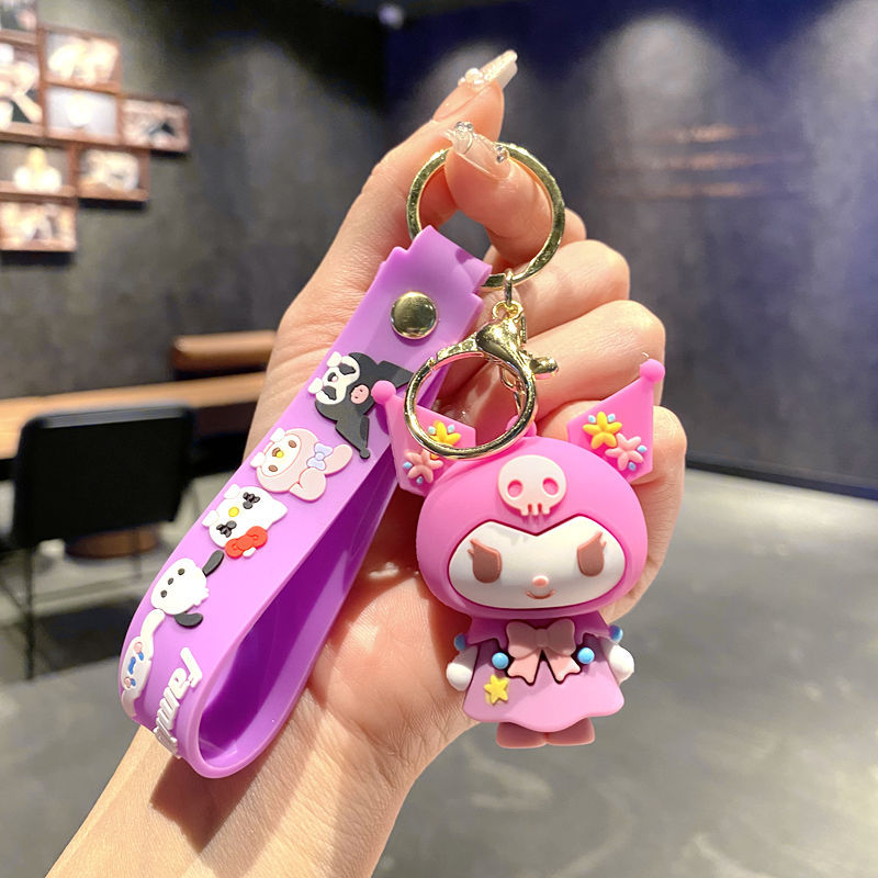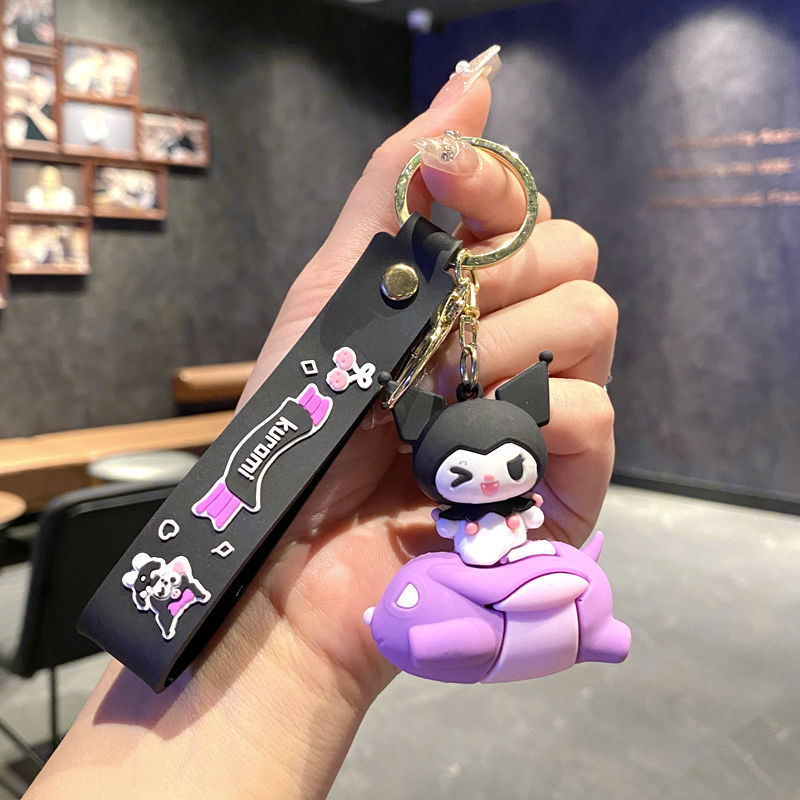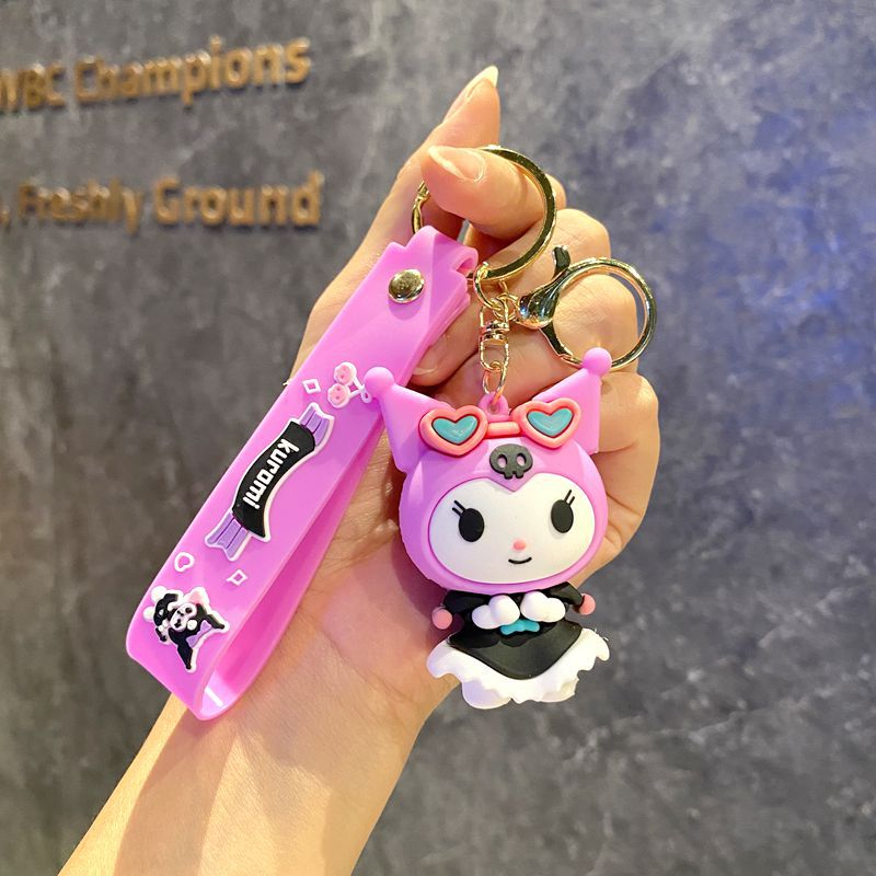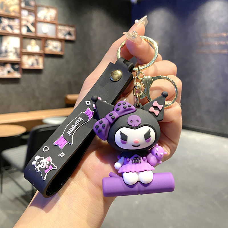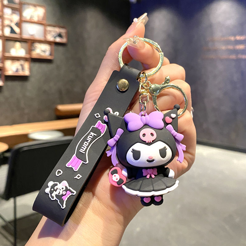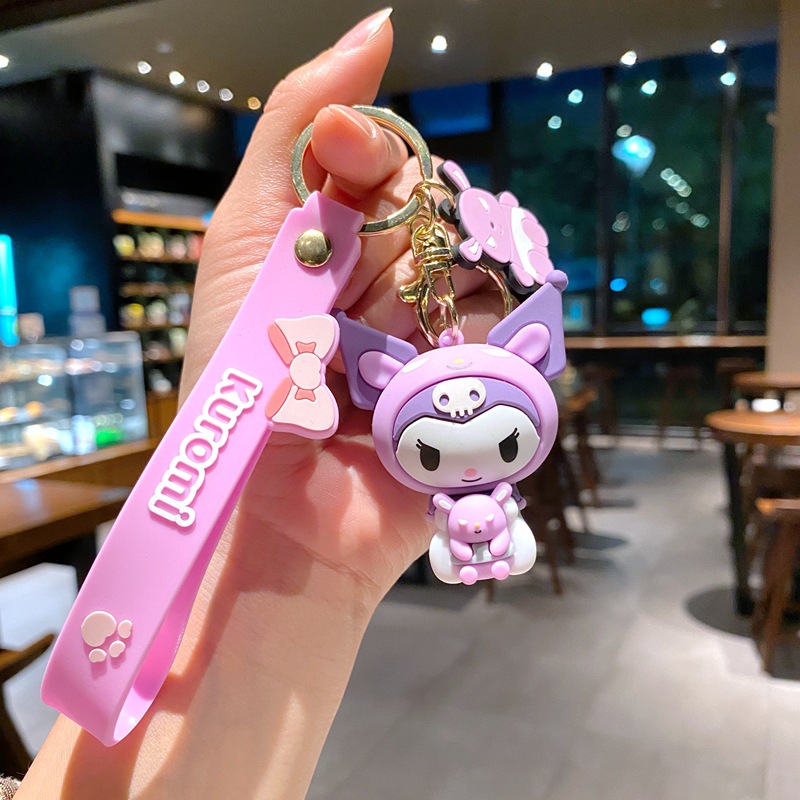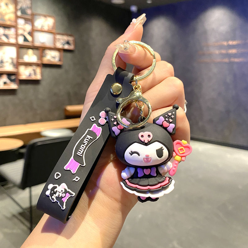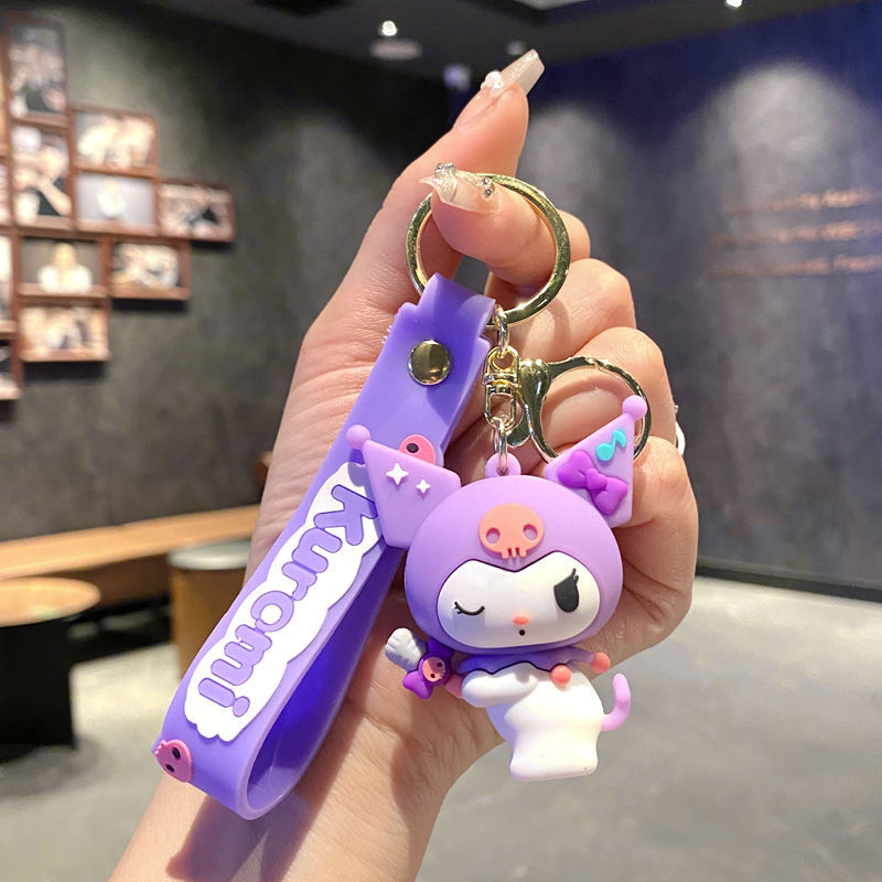 만화 Sanrio Kuromi 키 체인 인형 기계 인형 펜던트 귀여운 가방 열쇠 고리 작은 선물 도매스토어 가기