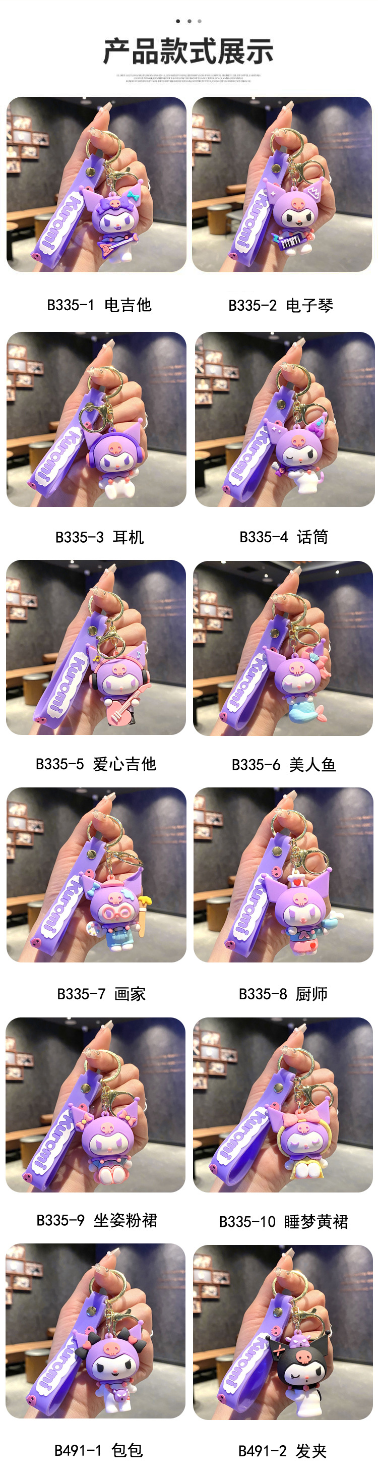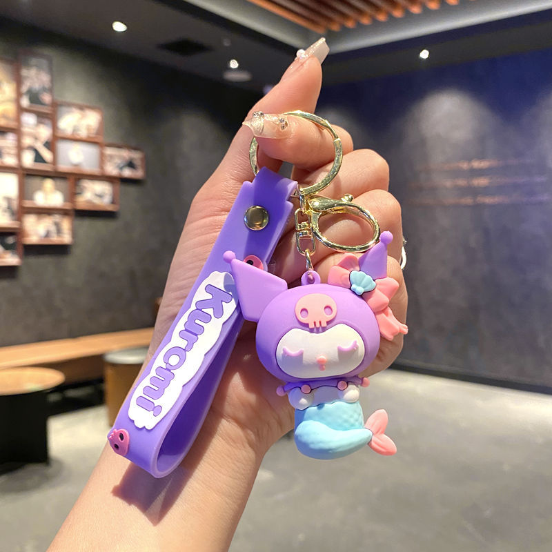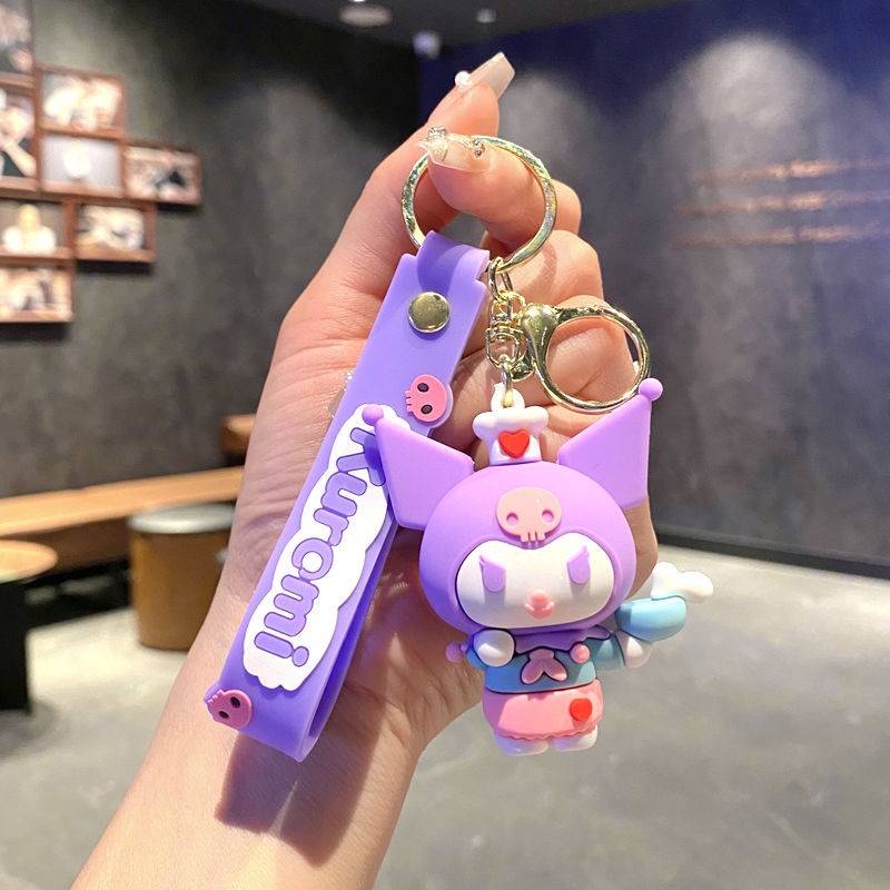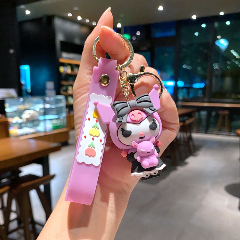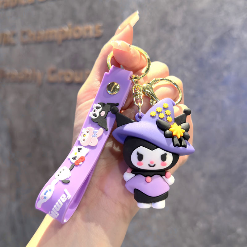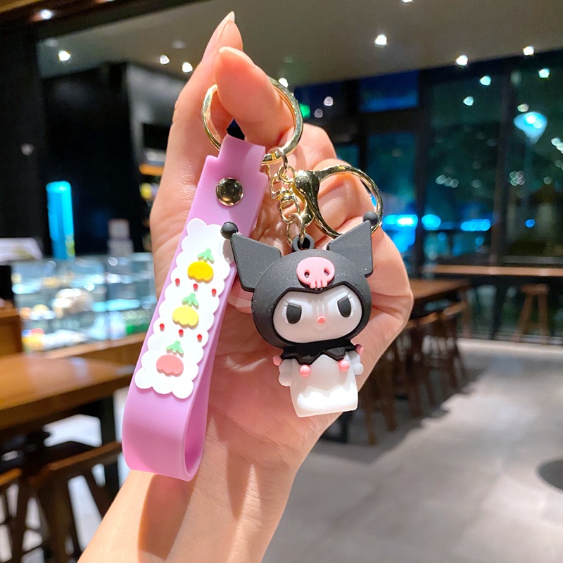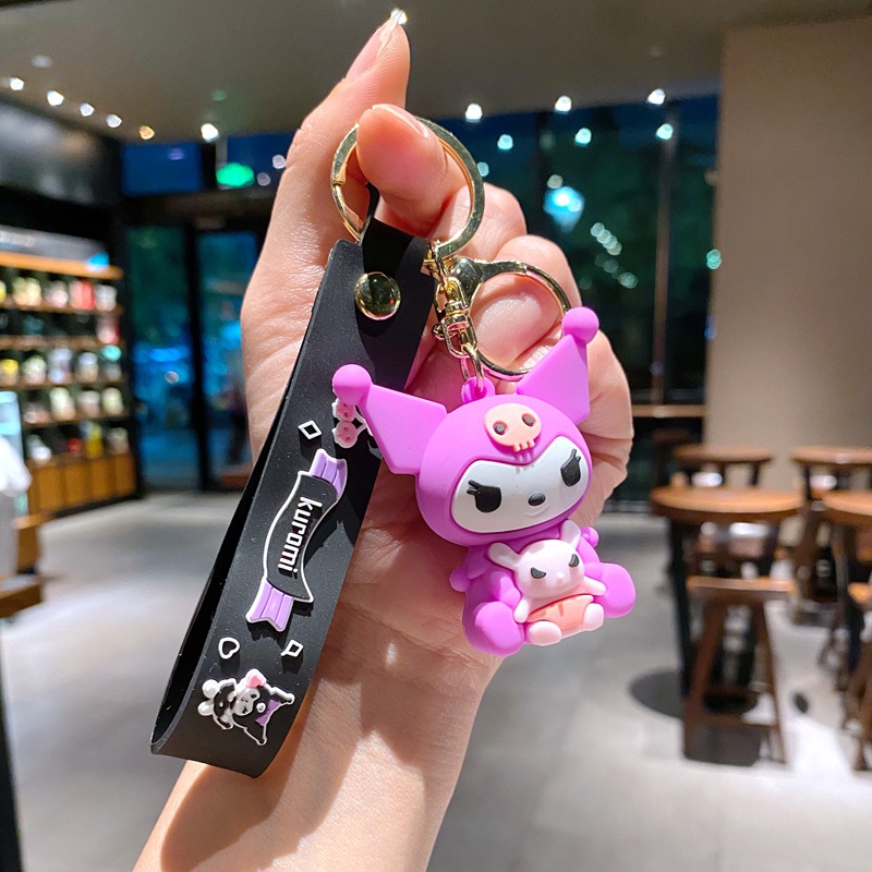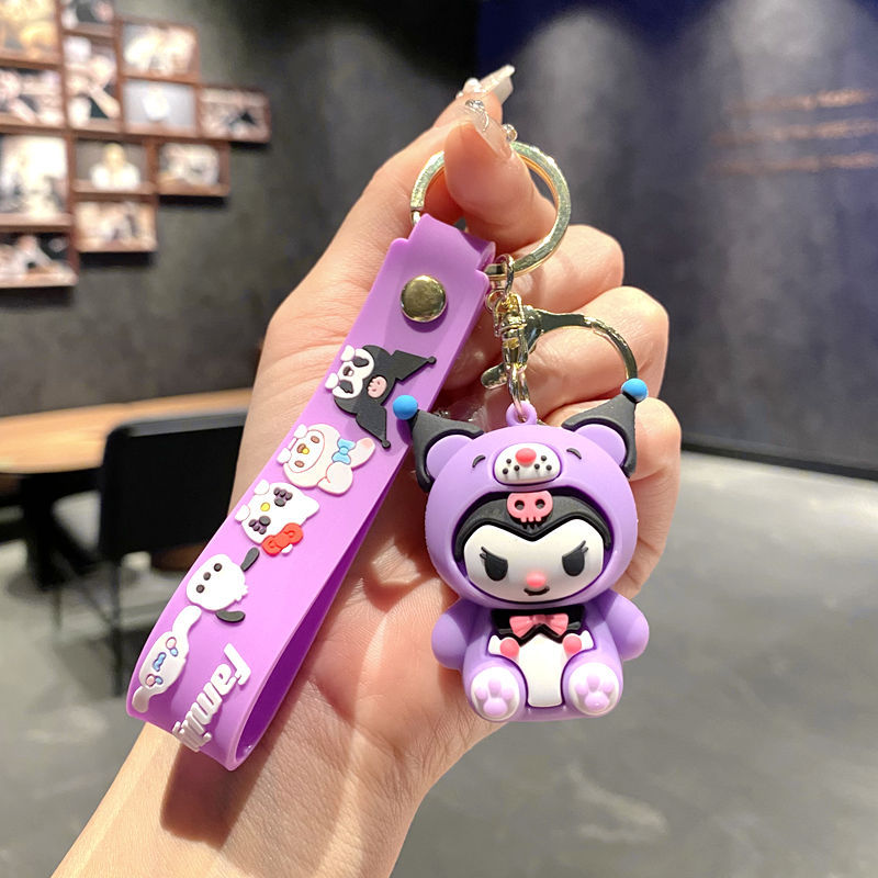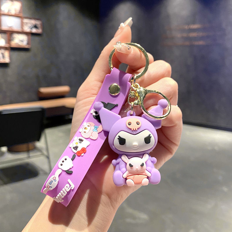 만화 Sanrio Kuromi 키 체인 인형 기계 인형 펜던트 귀여운 가방 열쇠 고리 작은 선물 도매스토어 가기
