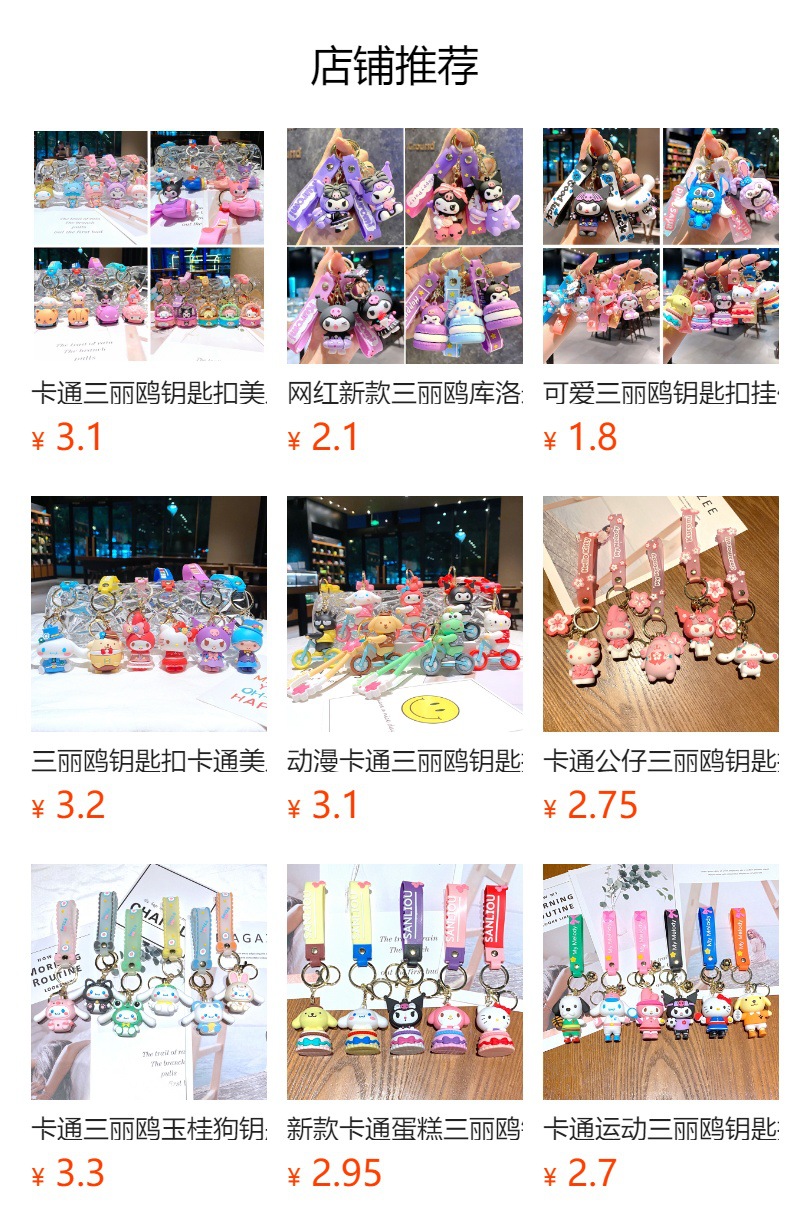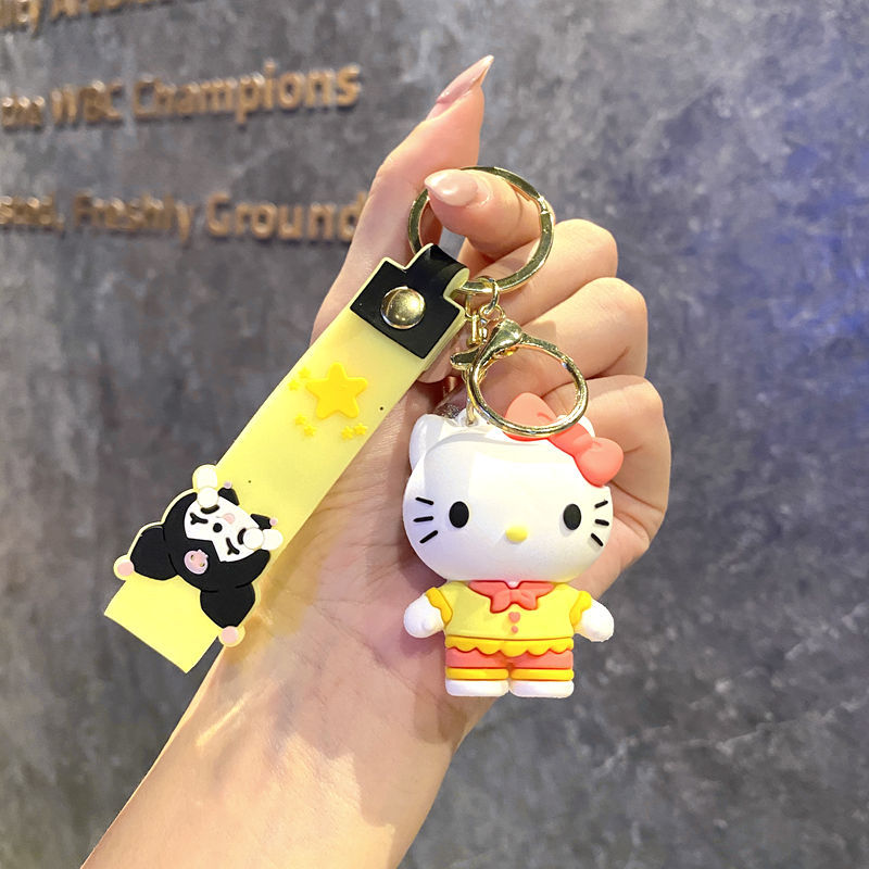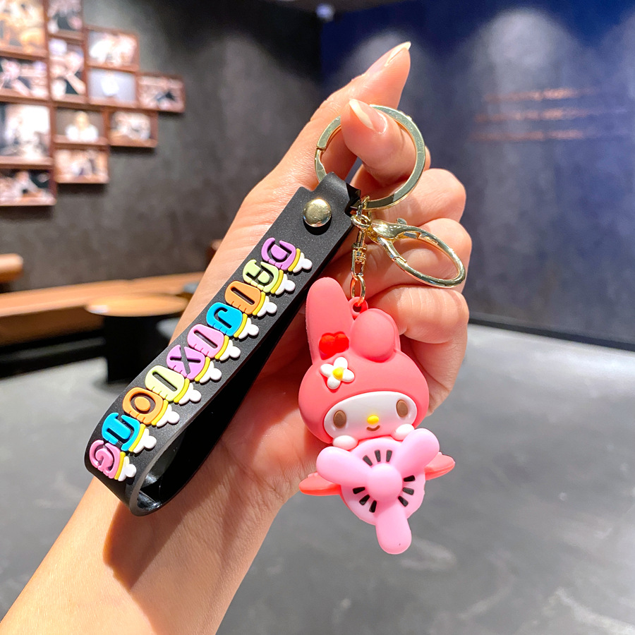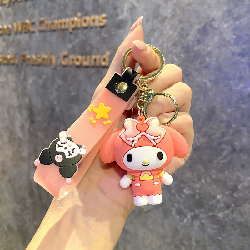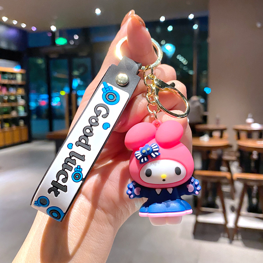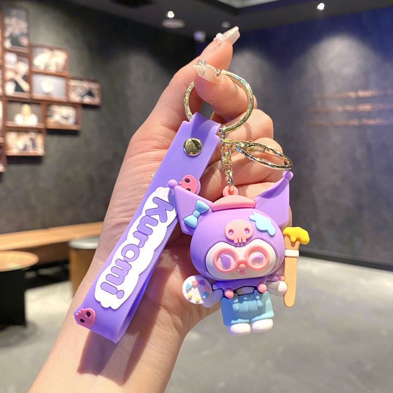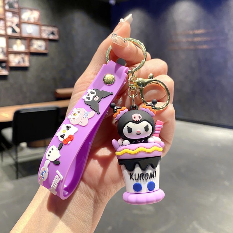 만화 Sanrio Kuromi 키 체인 인형 기계 인형 펜던트 귀여운 가방 열쇠 고리 작은 선물 도매스토어 가기