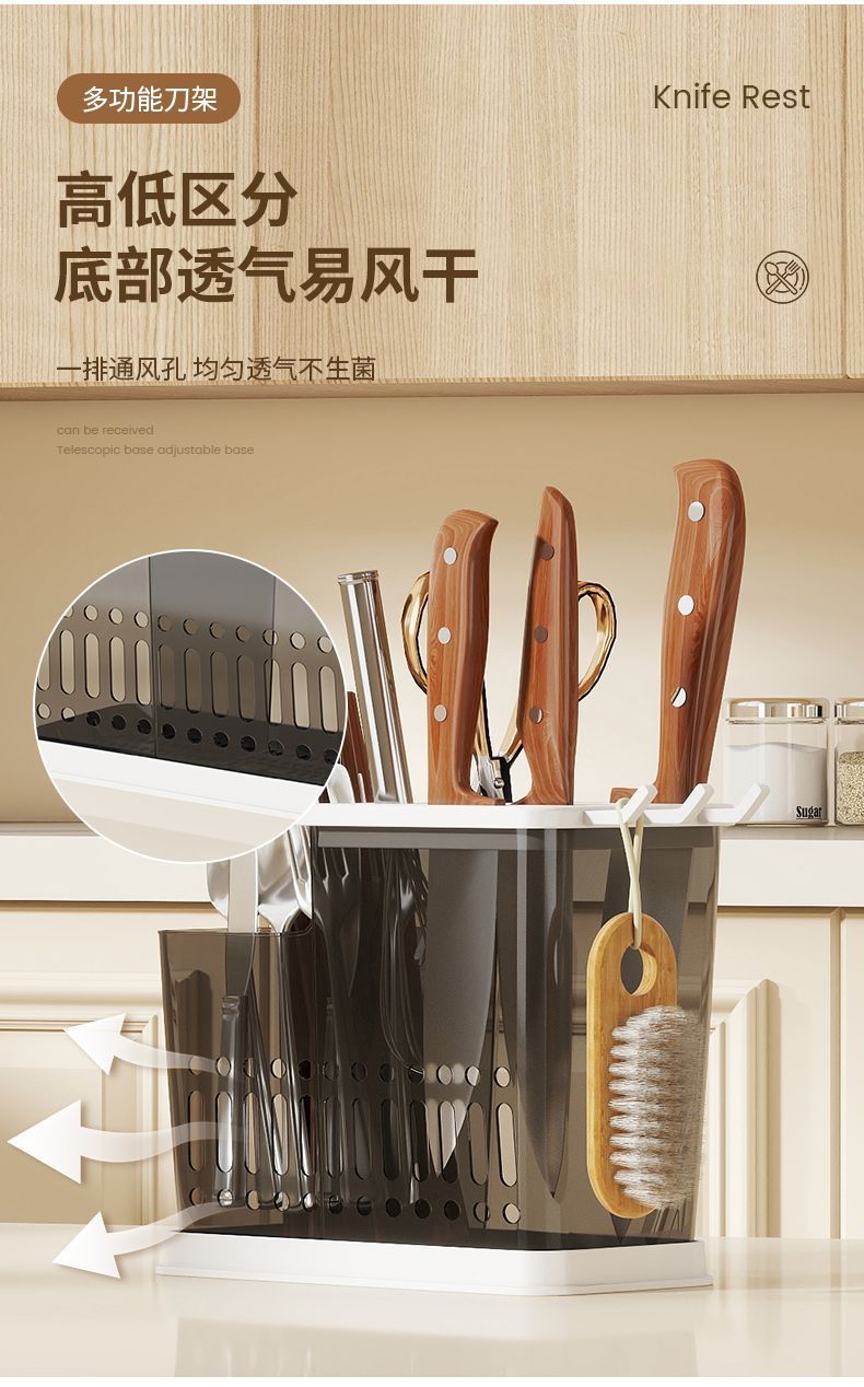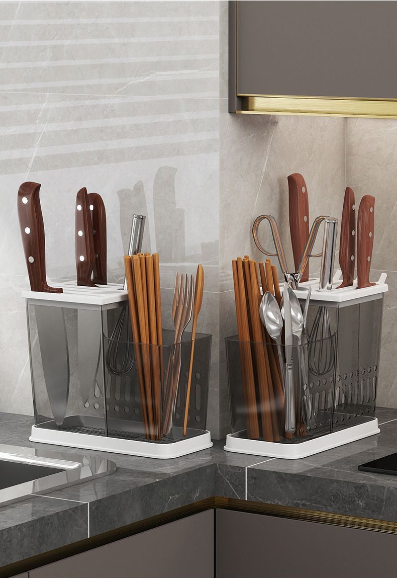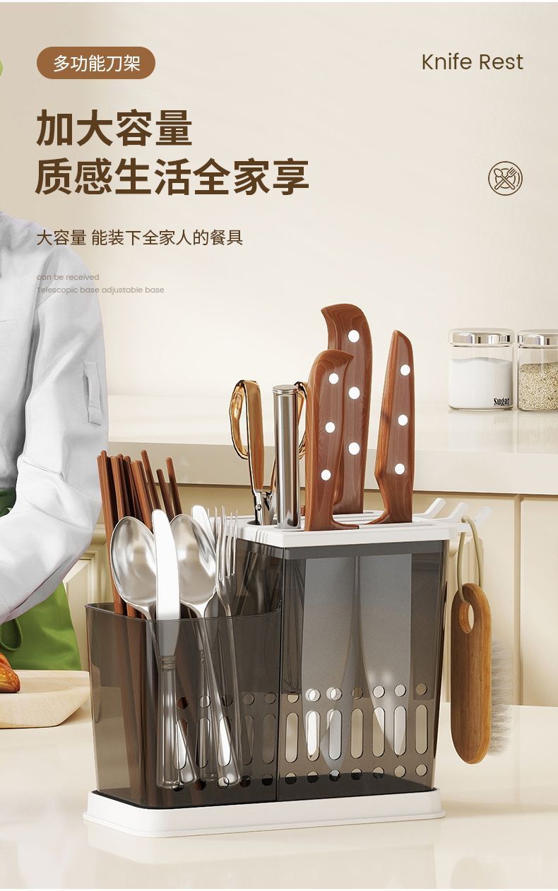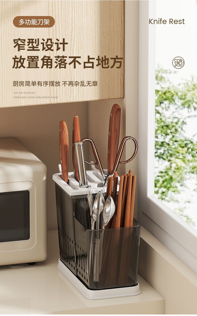 주방 나이프 랙 스토리지 랙 라이트 럭셔리 다기능 나이프 스토리지 랙 가정용 카운터 탑 투명 나이프 홀더 스토리지 랙