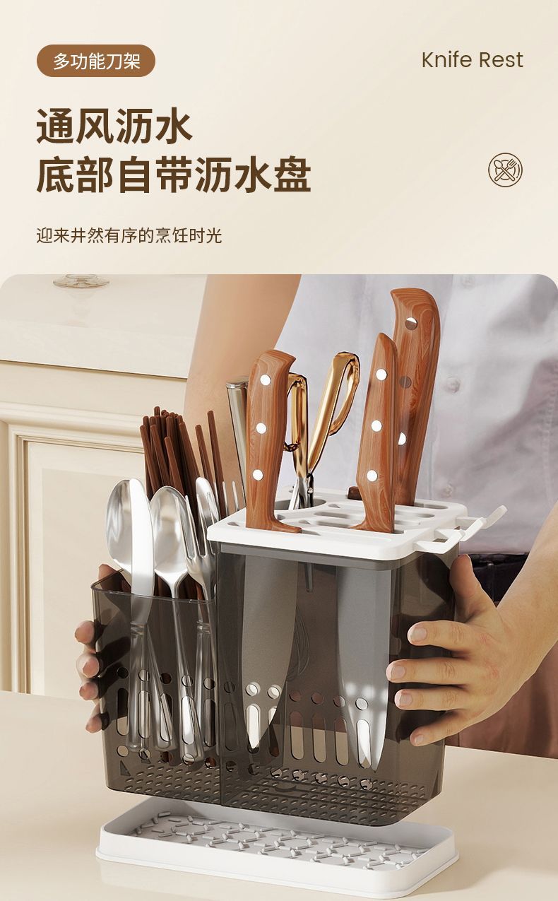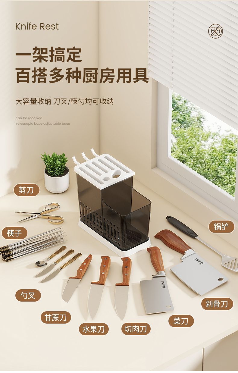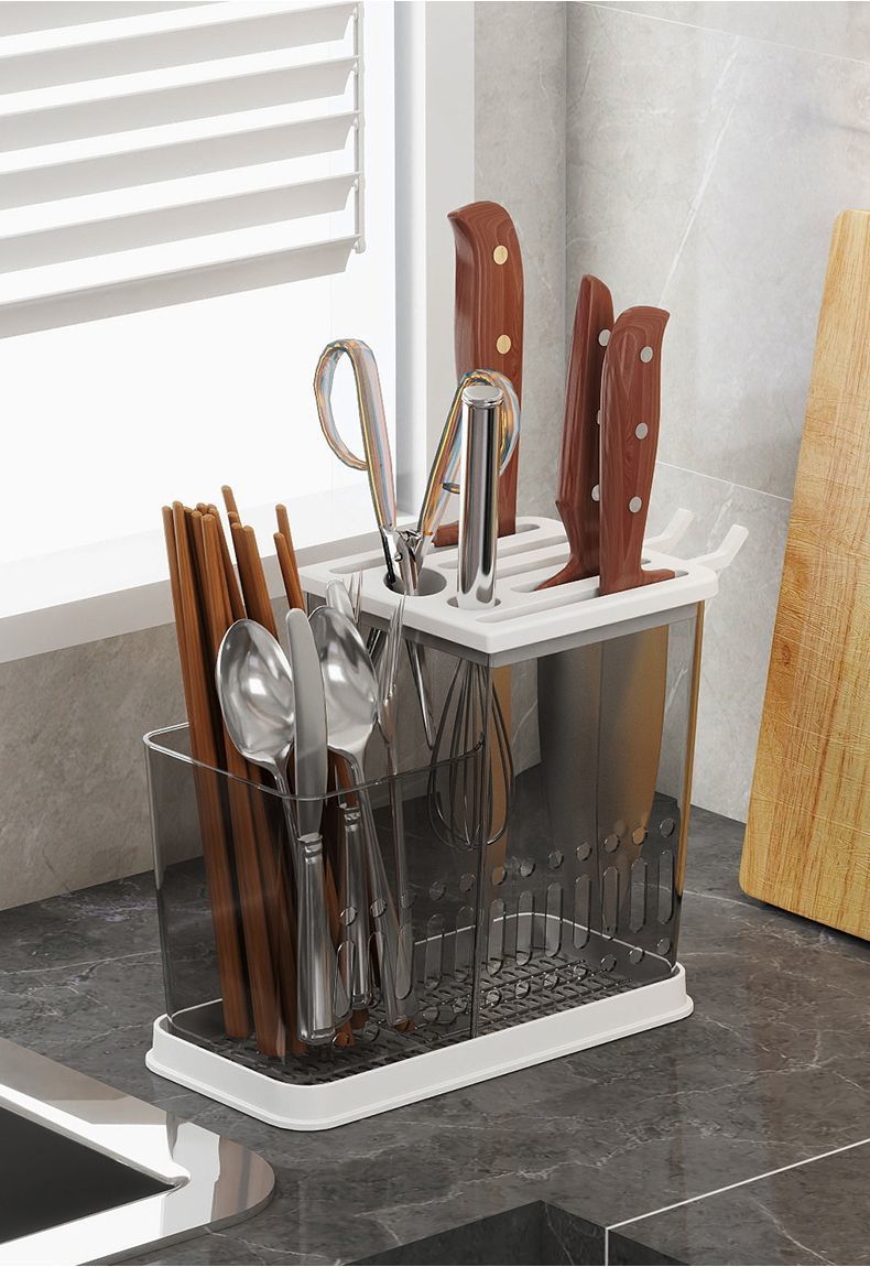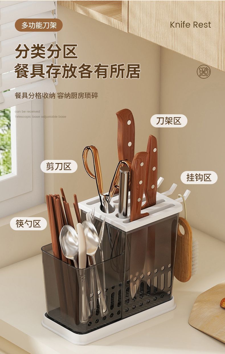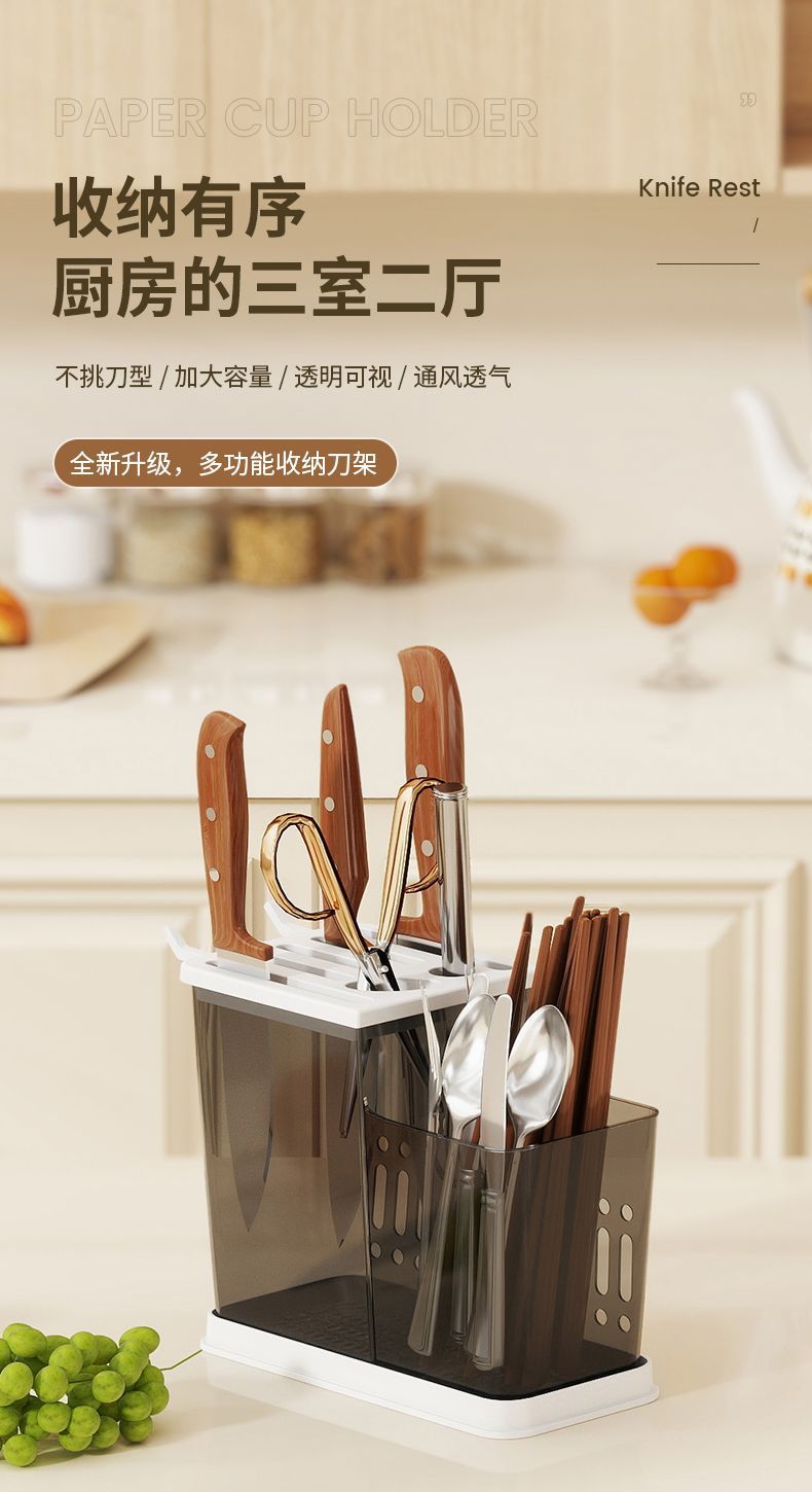주방 나이프 랙 스토리지 랙 라이트 럭셔리 다기능 나이프 스토리지 랙 가정용 카운터 탑 투명 나이프 홀더 스토리지 랙
