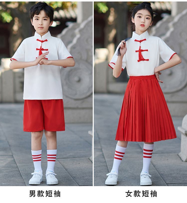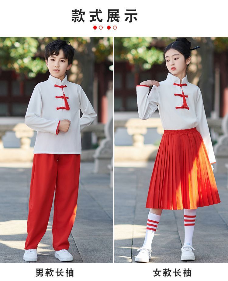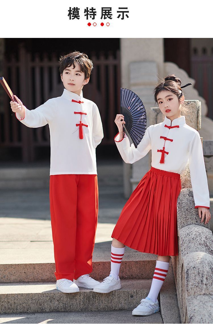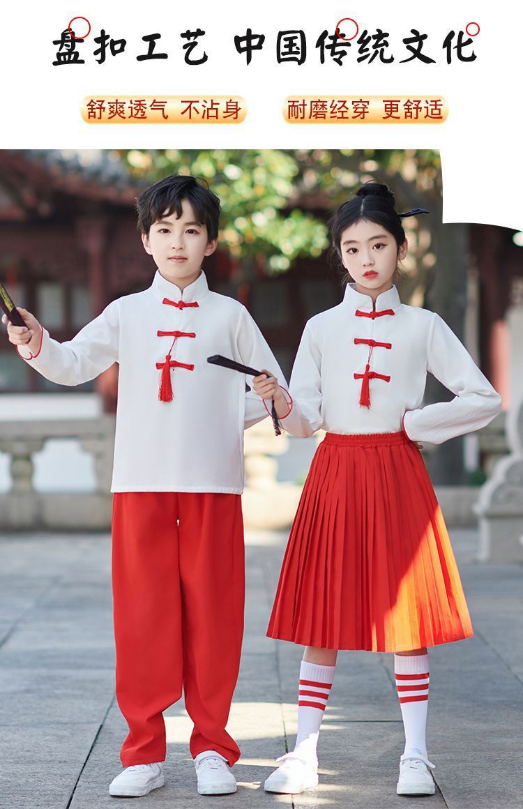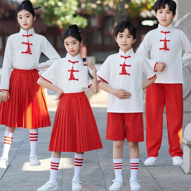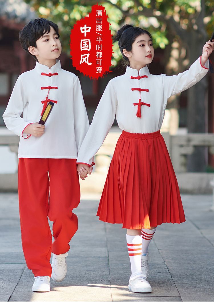 어린이 유치원 빨간 암송 공연 의상 초등 및 중등 학교 학생을위한 중국 스타일 애국 합창단 의상