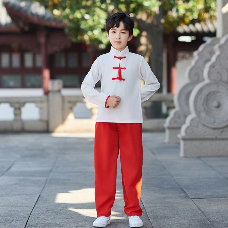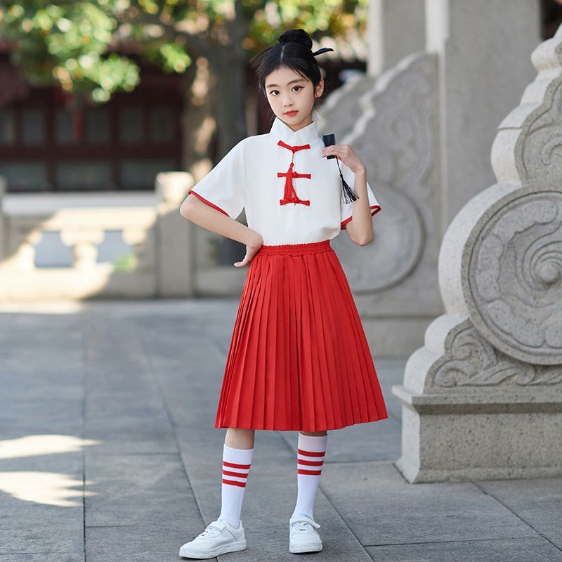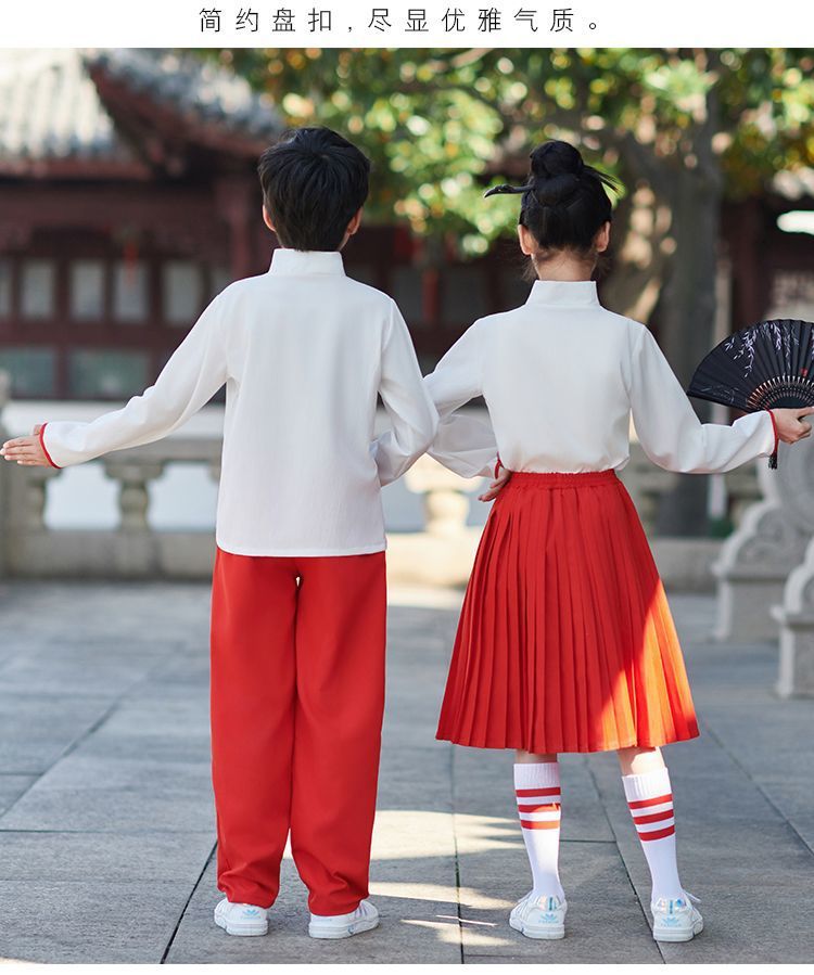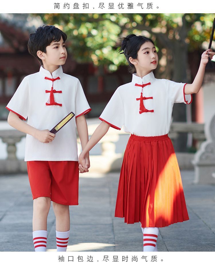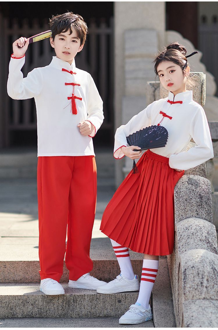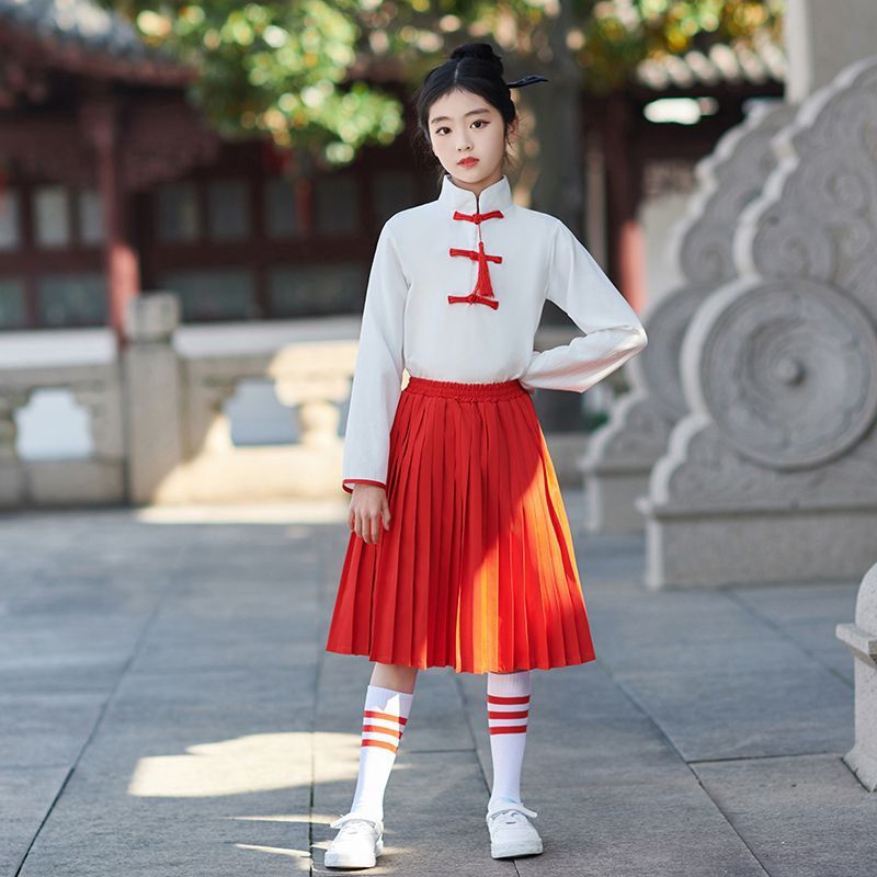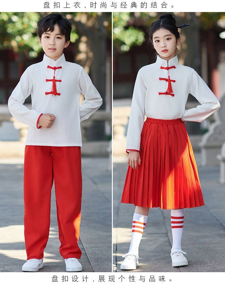 어린이 유치원 빨간 암송 공연 의상 초등 및 중등 학교 학생을위한 중국 스타일 애국 합창단 의상