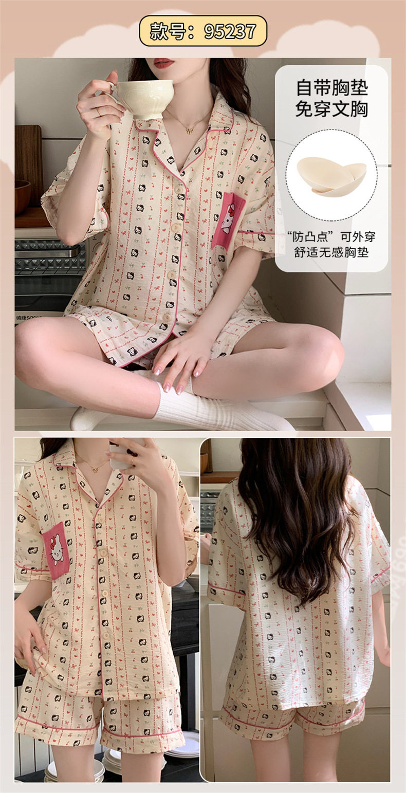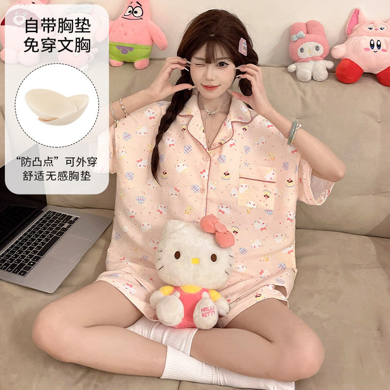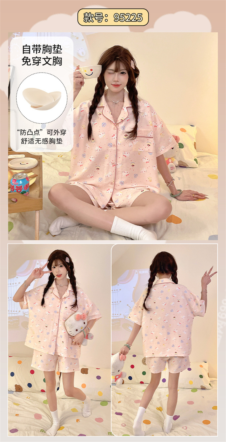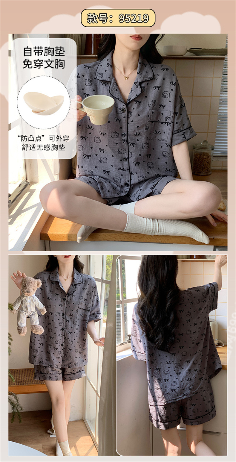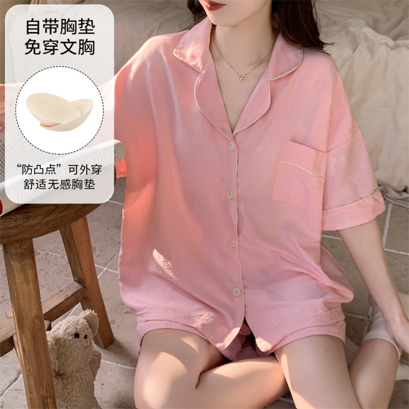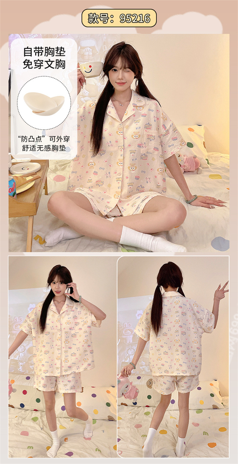 가슴 패드가 있는 새로운 스타일의 반팔 반바지 꽃무늬 가디건 잠옷 여성 여름 세트 대형 심플 캐주얼 홈웨어스토어 가기