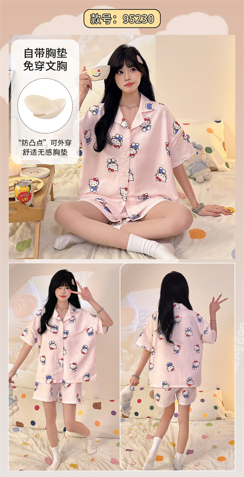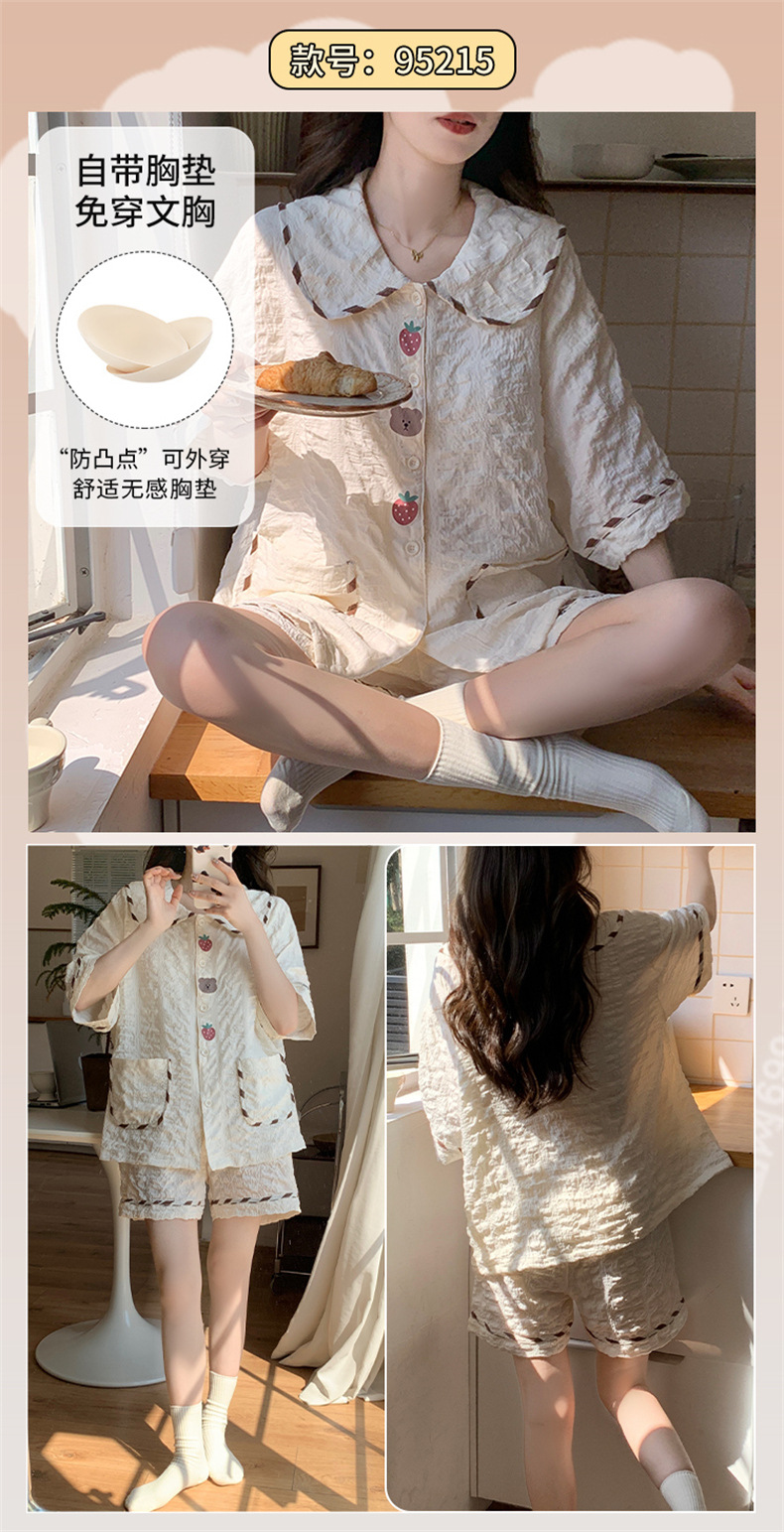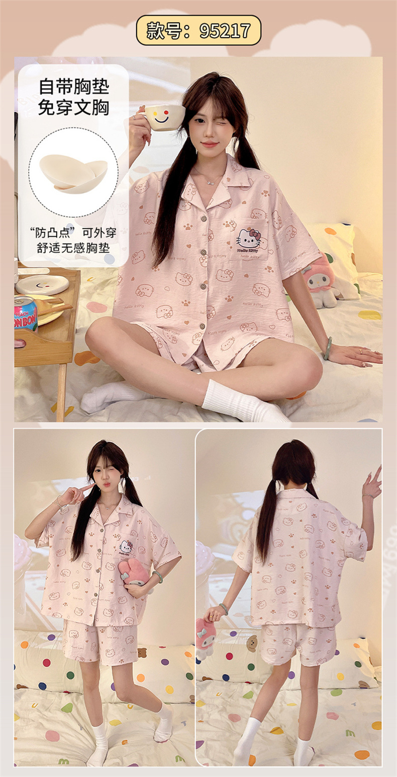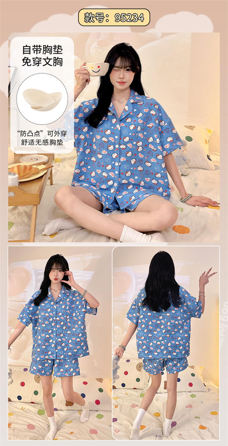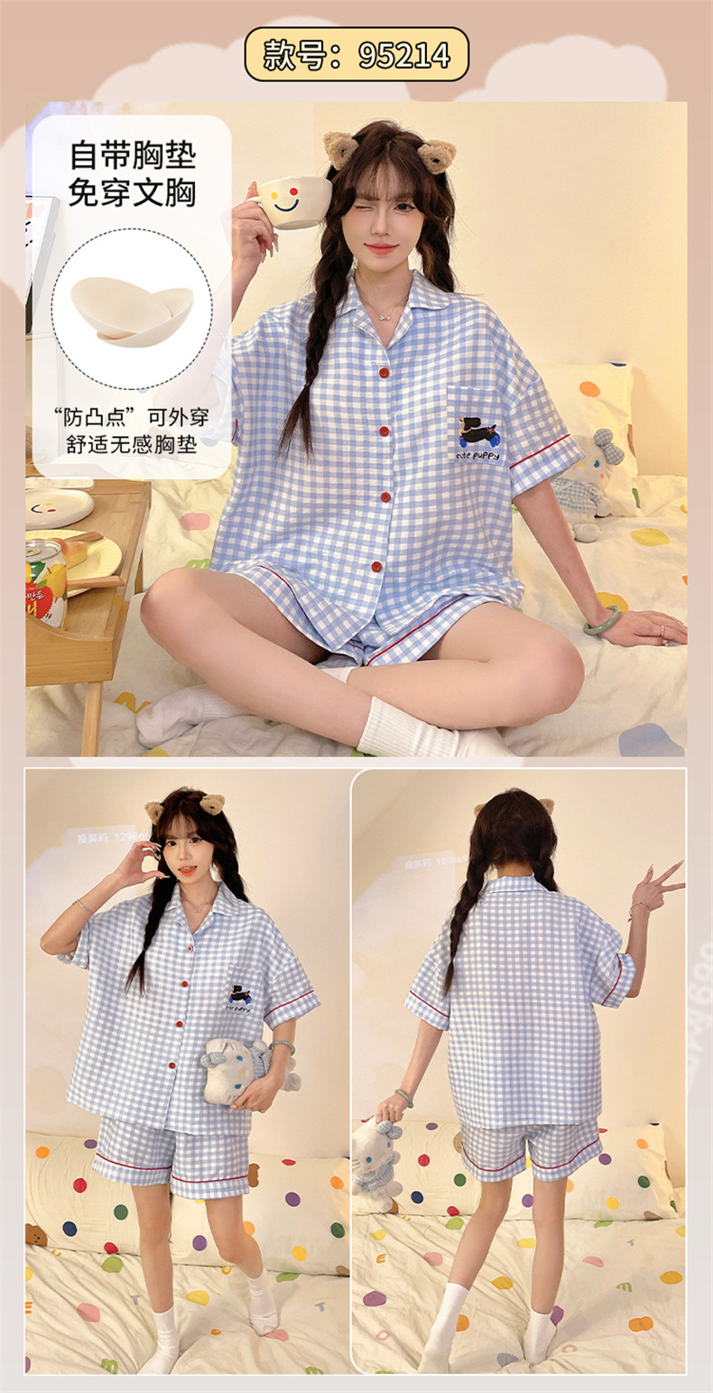가슴 패드가 있는 새로운 스타일의 반팔 반바지 꽃무늬 가디건 잠옷 여성 여름 세트 대형 심플 캐주얼 홈웨어스토어 가기