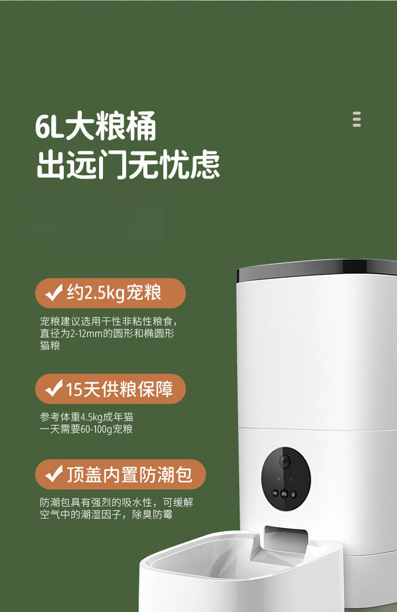 Linglong 고양이 자동 급식기 고양이 그릇 모니터링 기능이 있는 고양이 식사 타이머 개밥 고양이 그릇 지능형 원격 제어스토어 가기