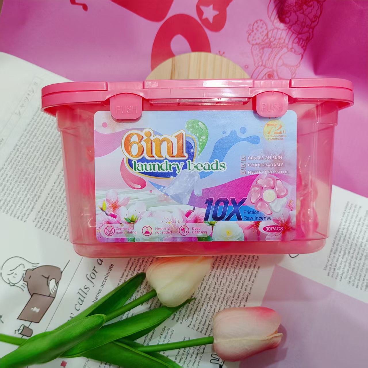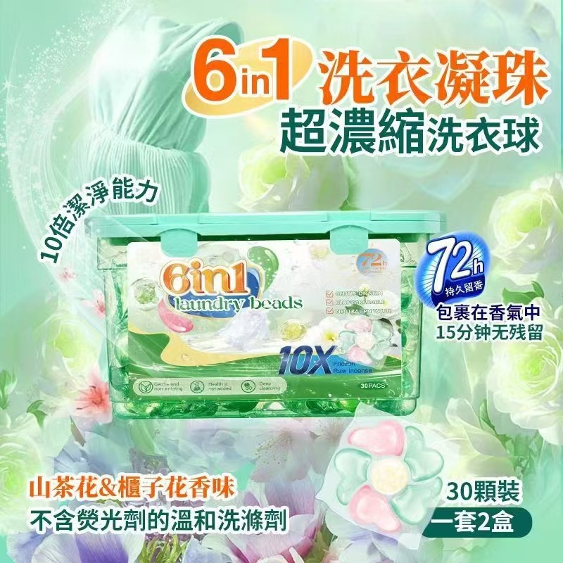 6-in-1 세탁 비즈, 강력한 오염 제거, 오래 지속되는 향, 농축 향 세탁 세제, 크로스보더 6X 세탁 비즈 도매스토어 가기