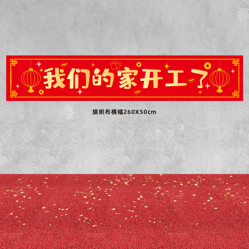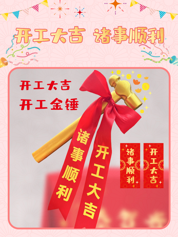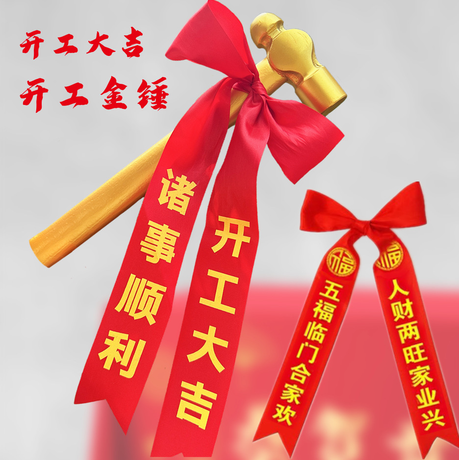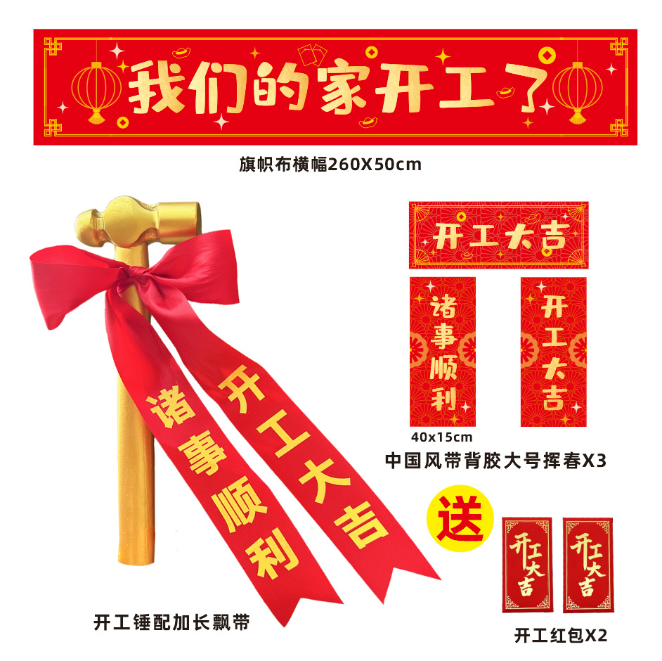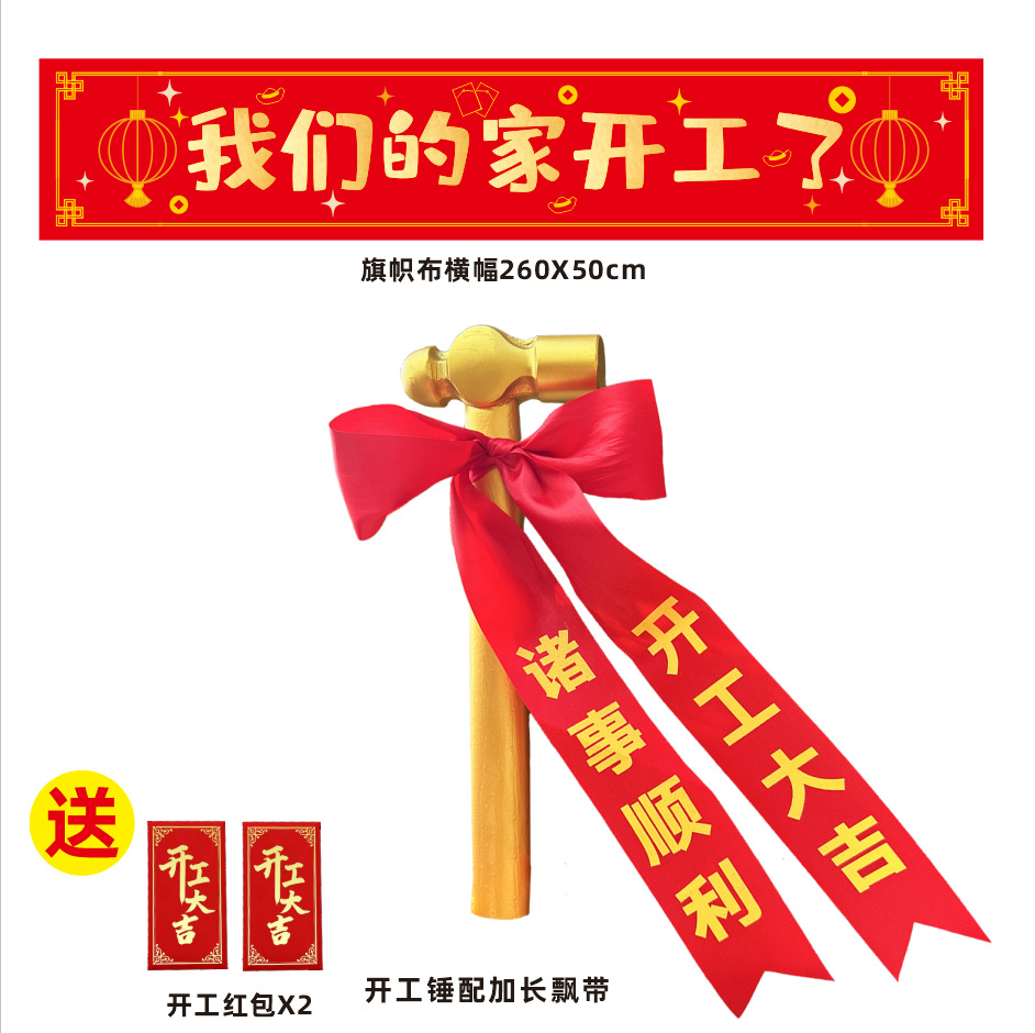 새 집 시작식 망치 황금 망치 지구 망치 시작 배너 문 스티커 시작 행사 완료 세트스토어 가기