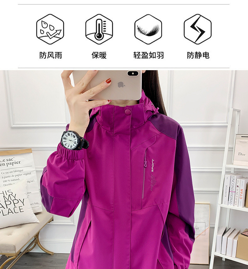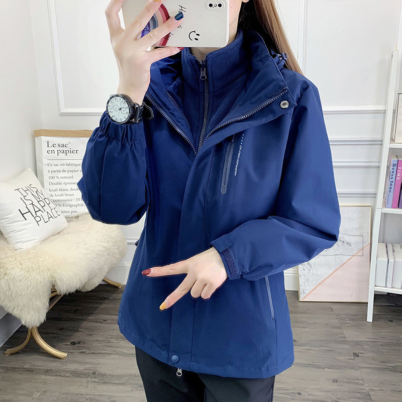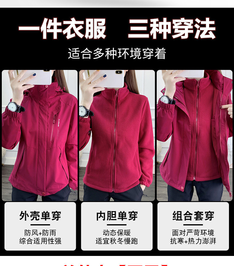 W6H 어머니 재킷 여성 가을, 겨울 중년 및 노인 야외 재킷 중년 50 세 3-in-One 두꺼운 등산 재킷