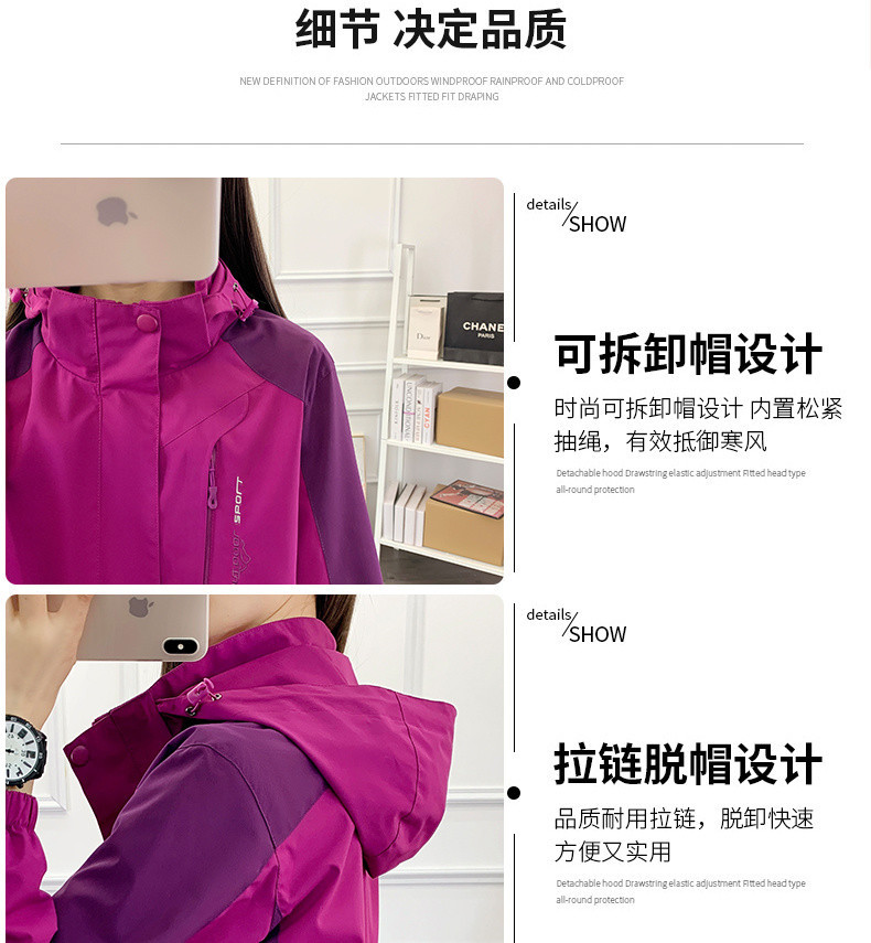 W6H 어머니 재킷 여성 가을, 겨울 중년 및 노인 야외 재킷 중년 50 세 3-in-One 두꺼운 등산 재킷스토어 가기