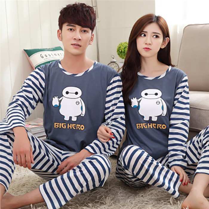 봄 긴 소매 커플 잠옷 세트 여름 소년 잠옷 세트 가을 소녀 착용 홈웨어