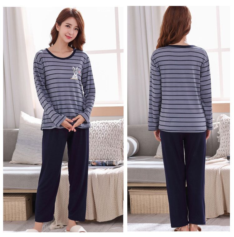 • 긴 소매 파란색 줄무늬 토끼