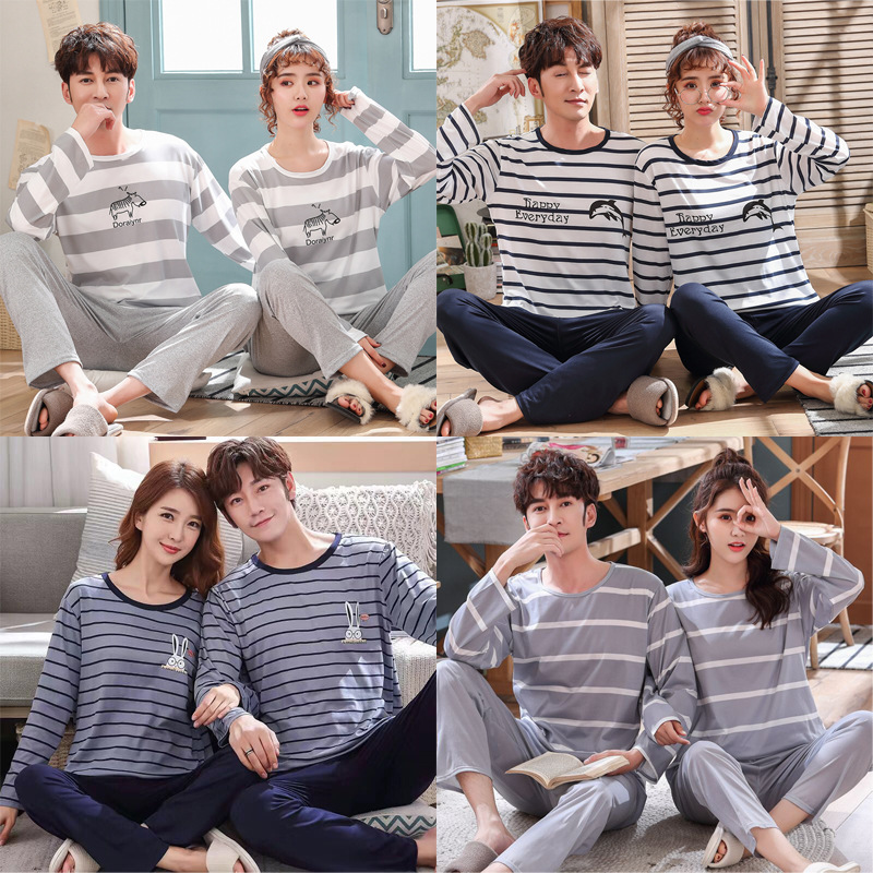 봄 긴 소매 커플 잠옷 세트 여름 소년 잠옷 세트 가을 소녀 착용 홈웨어스토어 가기