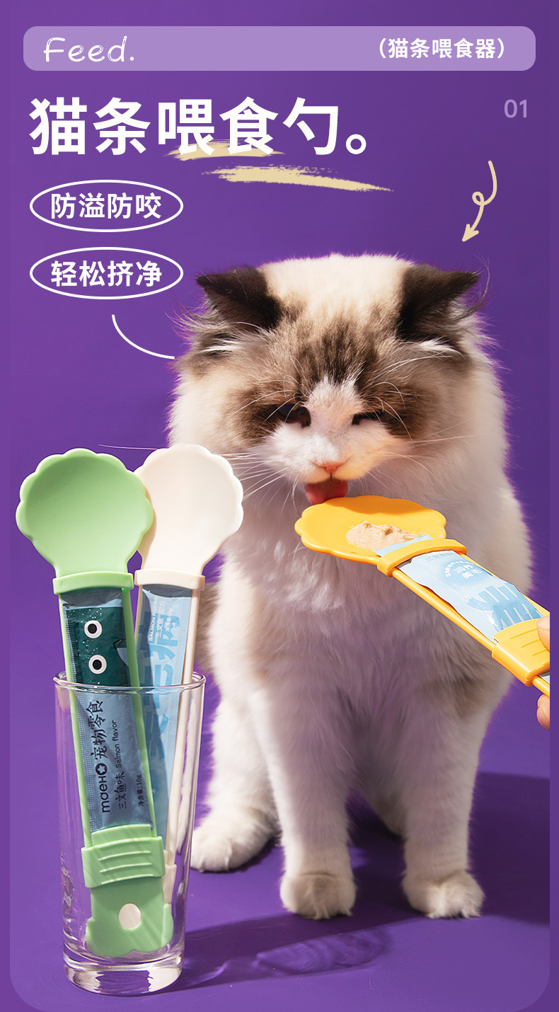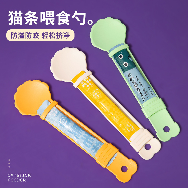 새로운 고양이 스트립 스푼 피더 압착기 피더 고양이 스트립 간식 개 고양이 먹이 스푼스토어 가기