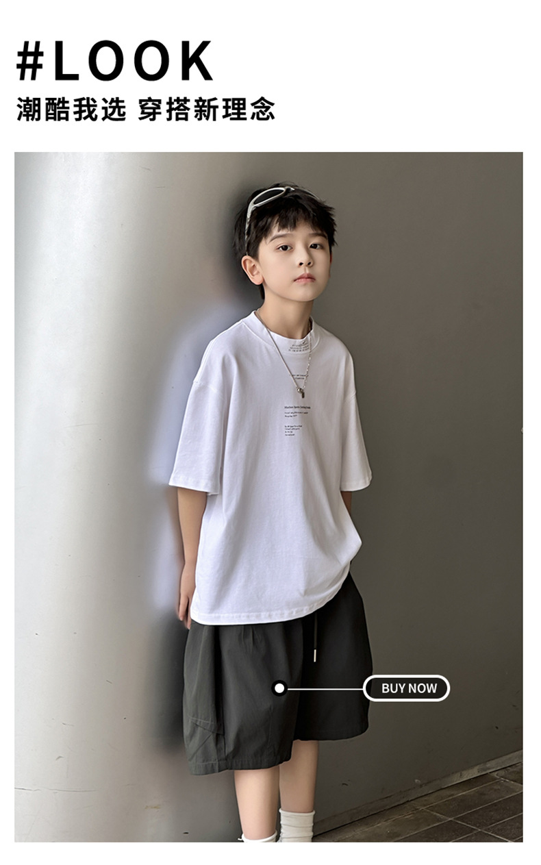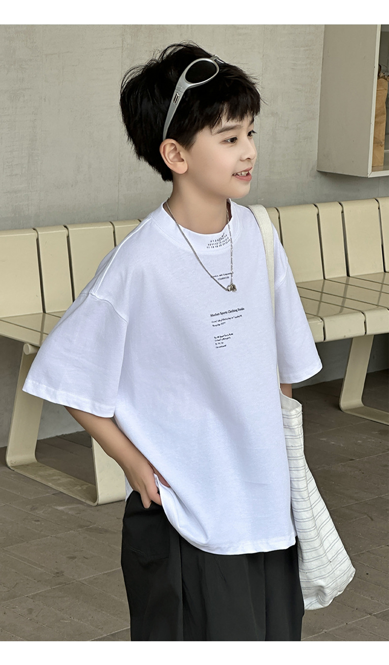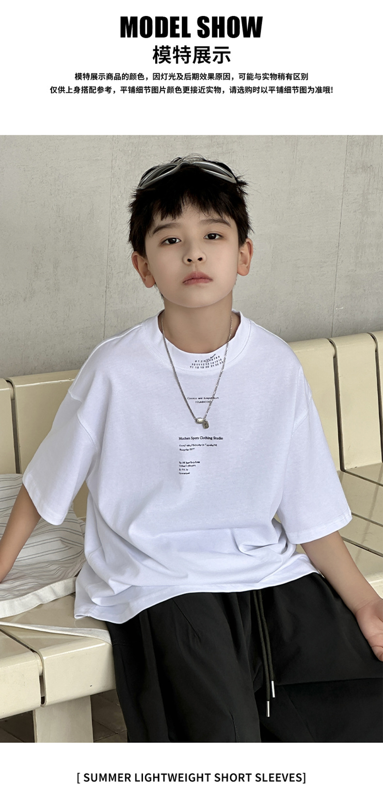 여름 신작 2025 소년 티셔츠 반팔 고중량 트렌디 브랜드 프린트 캐주얼 티셔츠 화이트 탑스토어 가기