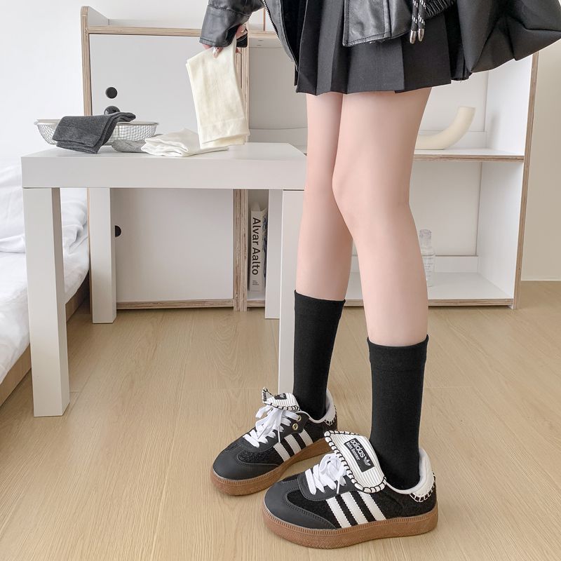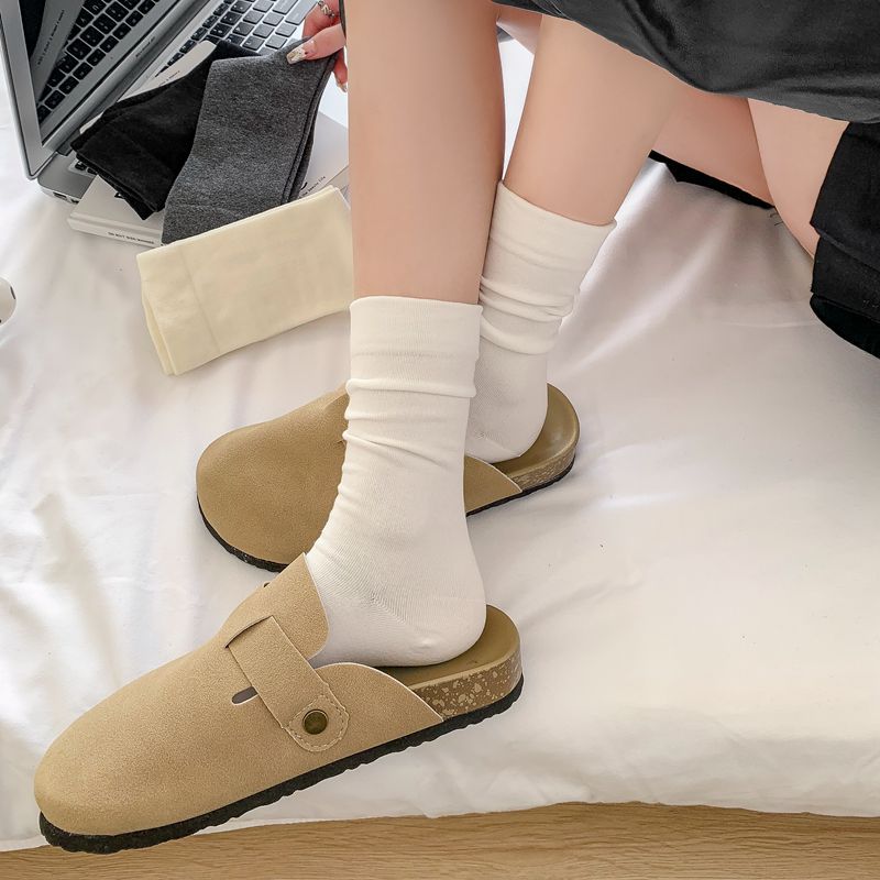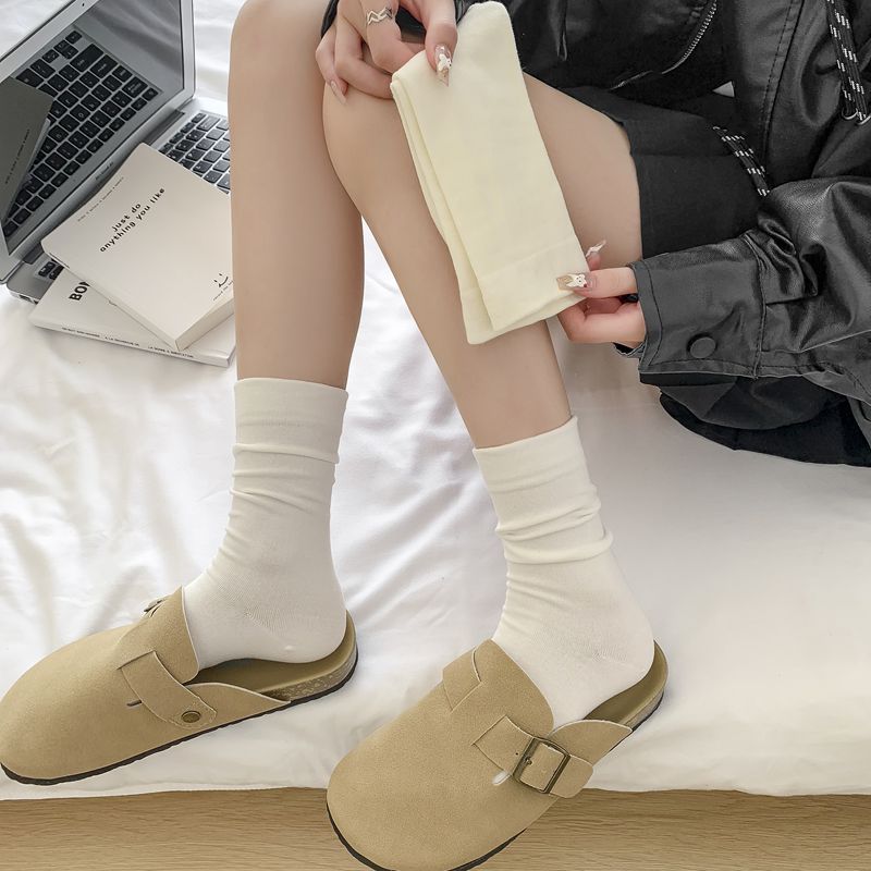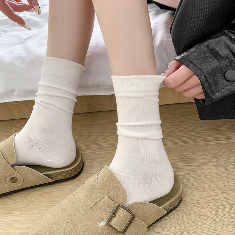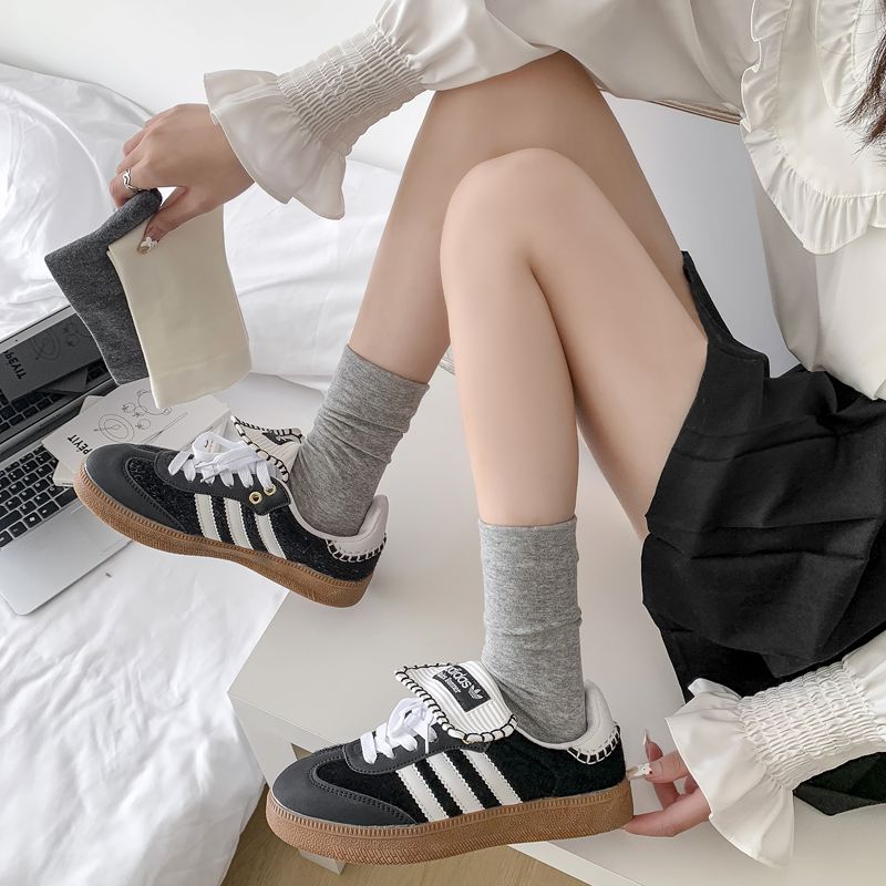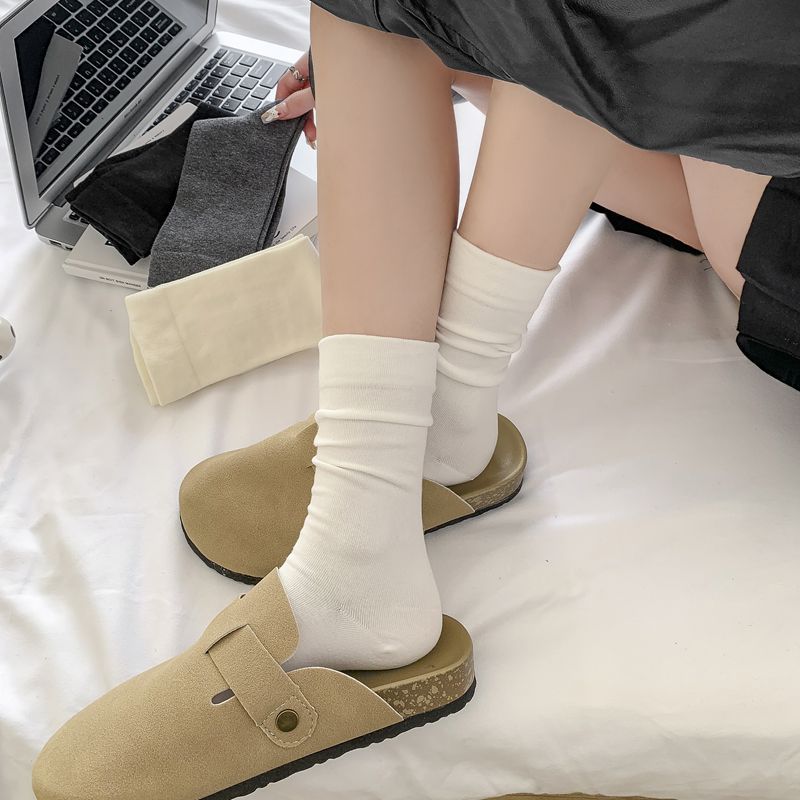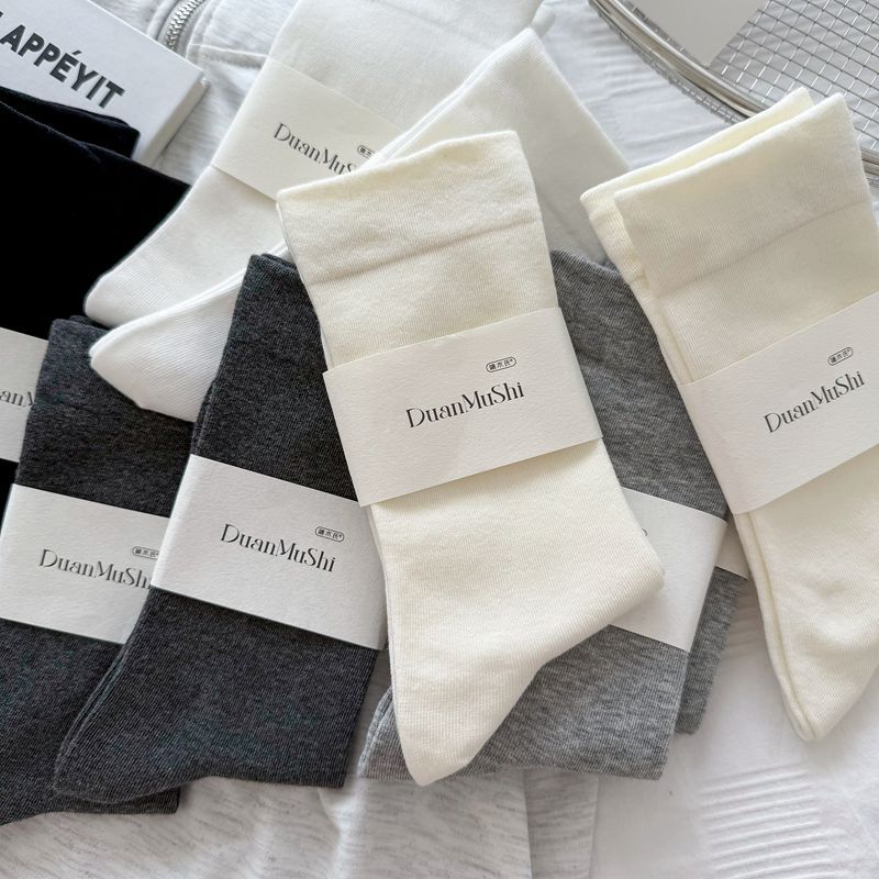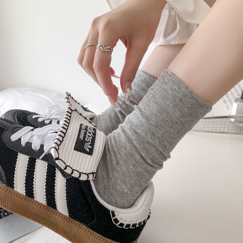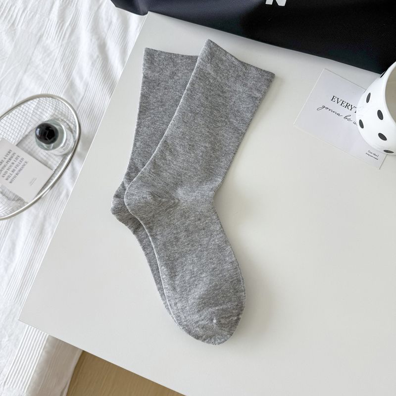 회색 한국 스타일 양말 수제 맞는 달 양말 느슨한 얇은 면 양말 기본 여성 양말