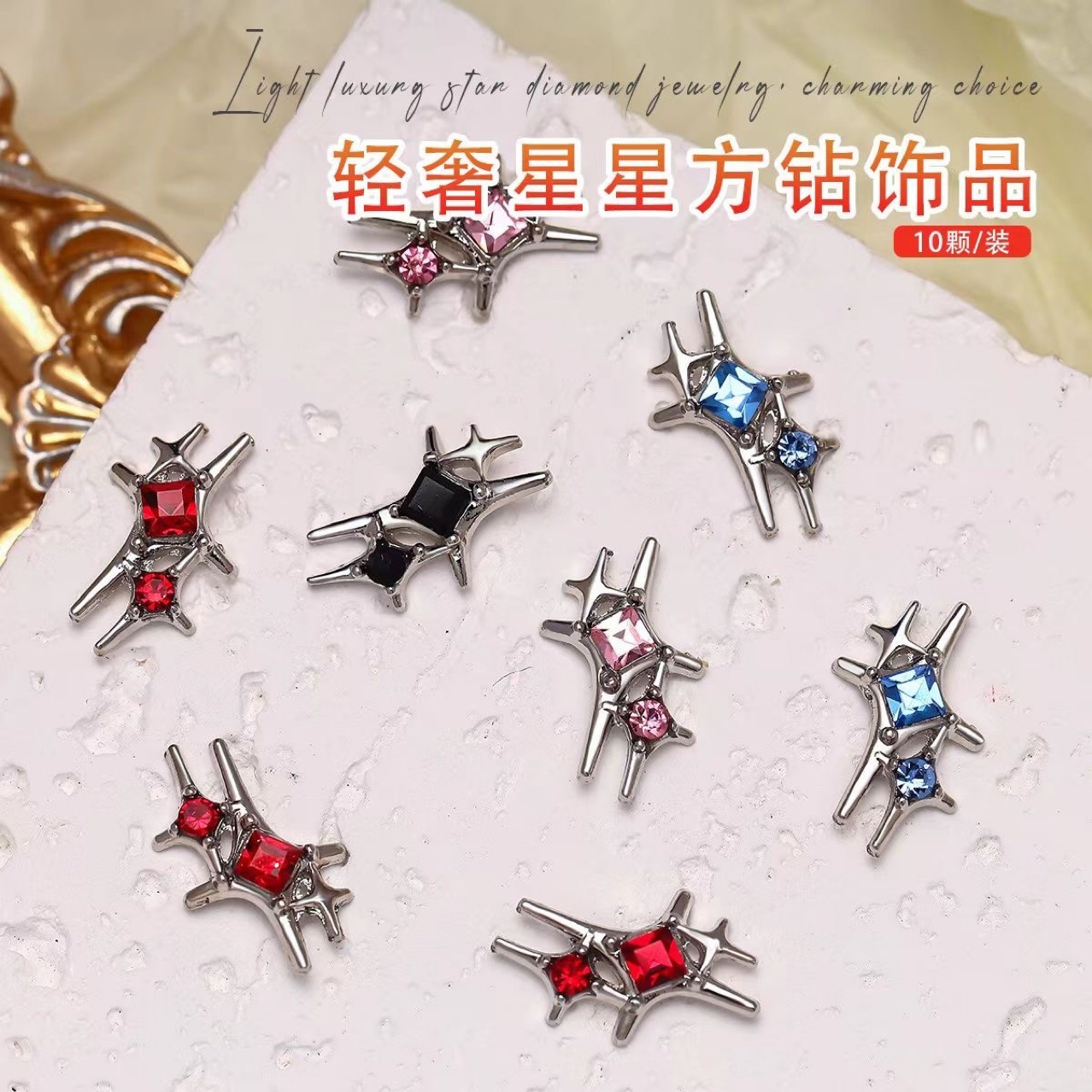 뜨거운 새로운 스타 스카이 더블 스타 플래시 다이아몬드 스퀘어 다이아몬드 네일 아트 쥬얼리 패션 클래식 간단한 네일 장식 액세서리스토어 가기