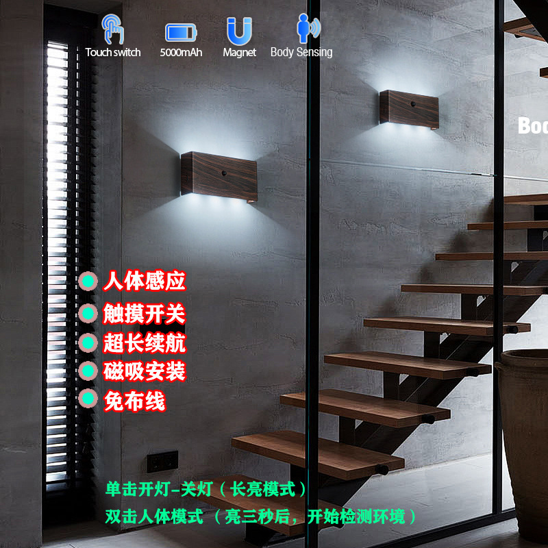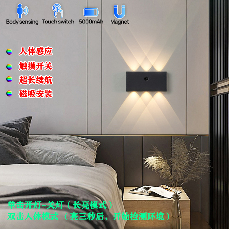 국경 간 LED 충전식 자기 벽 램프 원격 제어 배선이없는 터치 디밍 거실 침실 머리맡 복도 벽 램프