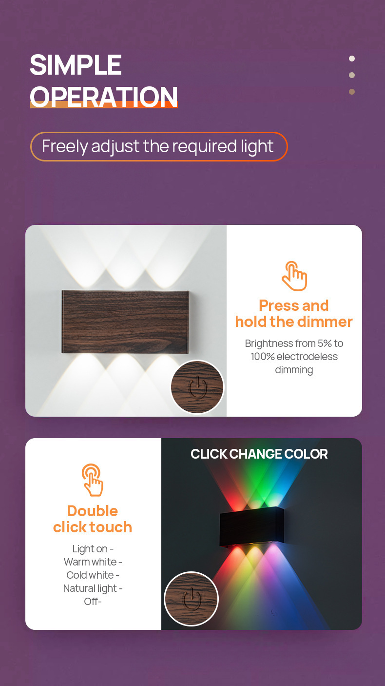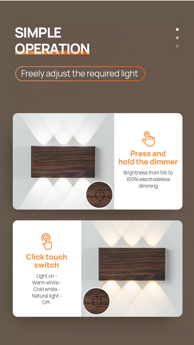 • 업그레이드 버전 - 리모컨 없이 다크 우드 터치 3톤 조명