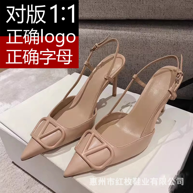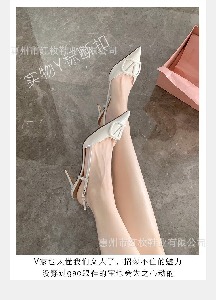 V의 누드 하이힐 여성용 스틸레토 힐 2025 새로운 스타일의 워렌 V 버클 포인티드 토 백 샌들 스타일의 올바른 버전스토어 가기