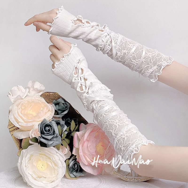 할로윈 액세서리 장갑 로리타 레이스 긴 손 소매 여성의 하위 문화 반 팜 발레 스타일 스트랩 슬리브 Y2K스토어 가기