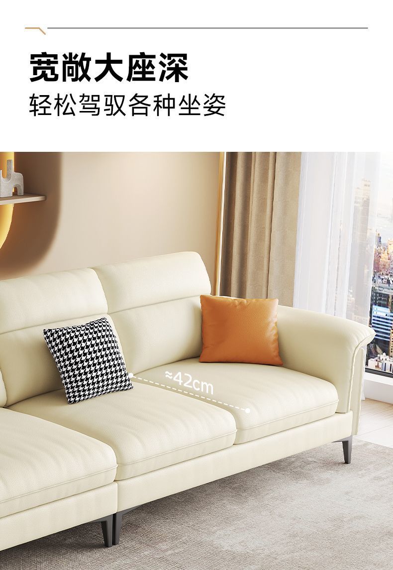 이탈리아 빛 고급 생태 가죽 작은 아파트 스트레이트 로우 노르딕 소파 조합 기술 천 소파 현대 간단한 거실
