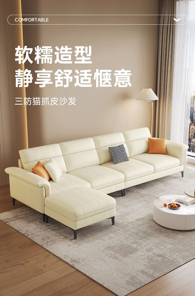 이탈리아 빛 고급 생태 가죽 작은 아파트 스트레이트 로우 노르딕 소파 조합 기술 천 소파 현대 간단한 거실스토어 가기